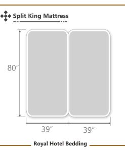 Sábanas de cama de 650 hilos de la marca Royal Hotel Bedding que ofrecen lujo y comodidad. Estas sábanas sin arrugas están hechas de una mezcla de algodón 70 por ciento y poliéster 30 por ciento, lo que las hace suaves y duraderas. El set Split-King incluye una sábana plana de tamaño 110X102″, 2 sábanas ajustables de tamaño 39X80″ cada una que se ajustan a colchones de hasta 18 pulgadas de profundidad, y 2 fundas de almohada King de tamaño 20X40″. El tejido de satén de un solo hilo proporciona una sensación lujosa y sedosa, mientras que el ajuste elástico alrededor de la sábana asegura un ajuste perfecto. Estas sábanas son fáciles de cuidar, se pueden lavar a máquina en agua fría, planchar a fuego lento si es necesario y secar en secadora a baja temperatura para mantener su suavidad. Disfrute de noches de sueño tranquilo y confortable con estas sábanas de cama de lujo.