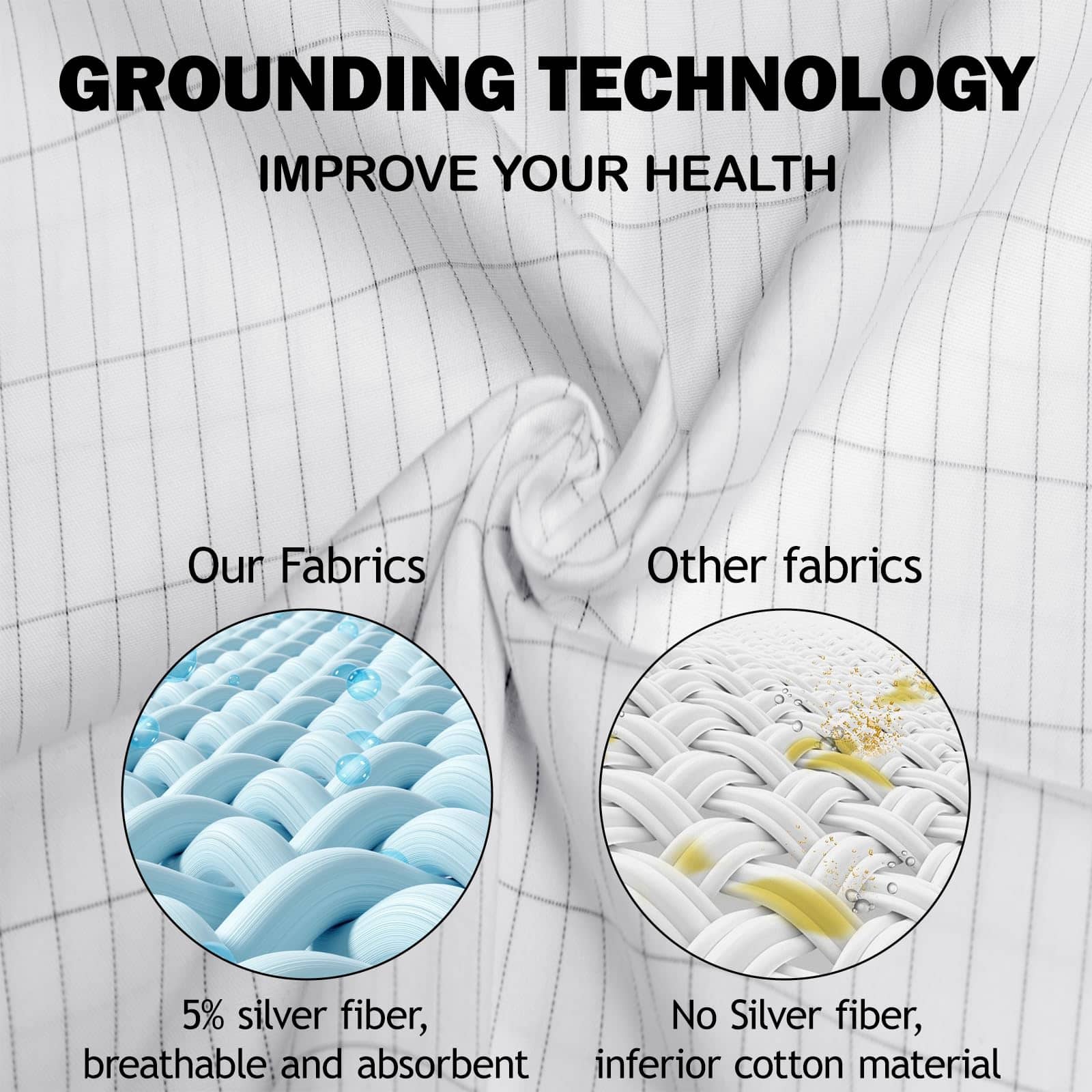 Sábanas de Conexión a Tierra con 5% de Fibra de Plata y 95%