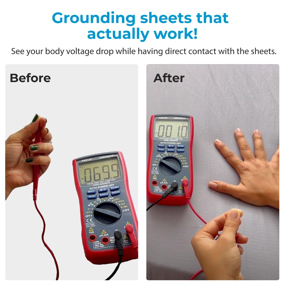 Al utilizar nuestras sábanas de conexión a tierra, experimentará beneficios para la salud que incluyen un sueño más profundo y menos interrupciones durante la noche. La conexión a tierra ha demostrado reducir la inflamación, el estrés y la fatiga, al tiempo que aumenta los niveles de energía y bienestar general. Nuestras sábanas están respaldadas por la ciencia, basadas en estudios que han demostrado los efectos positivos de la conexión a tierra en la salud humana.