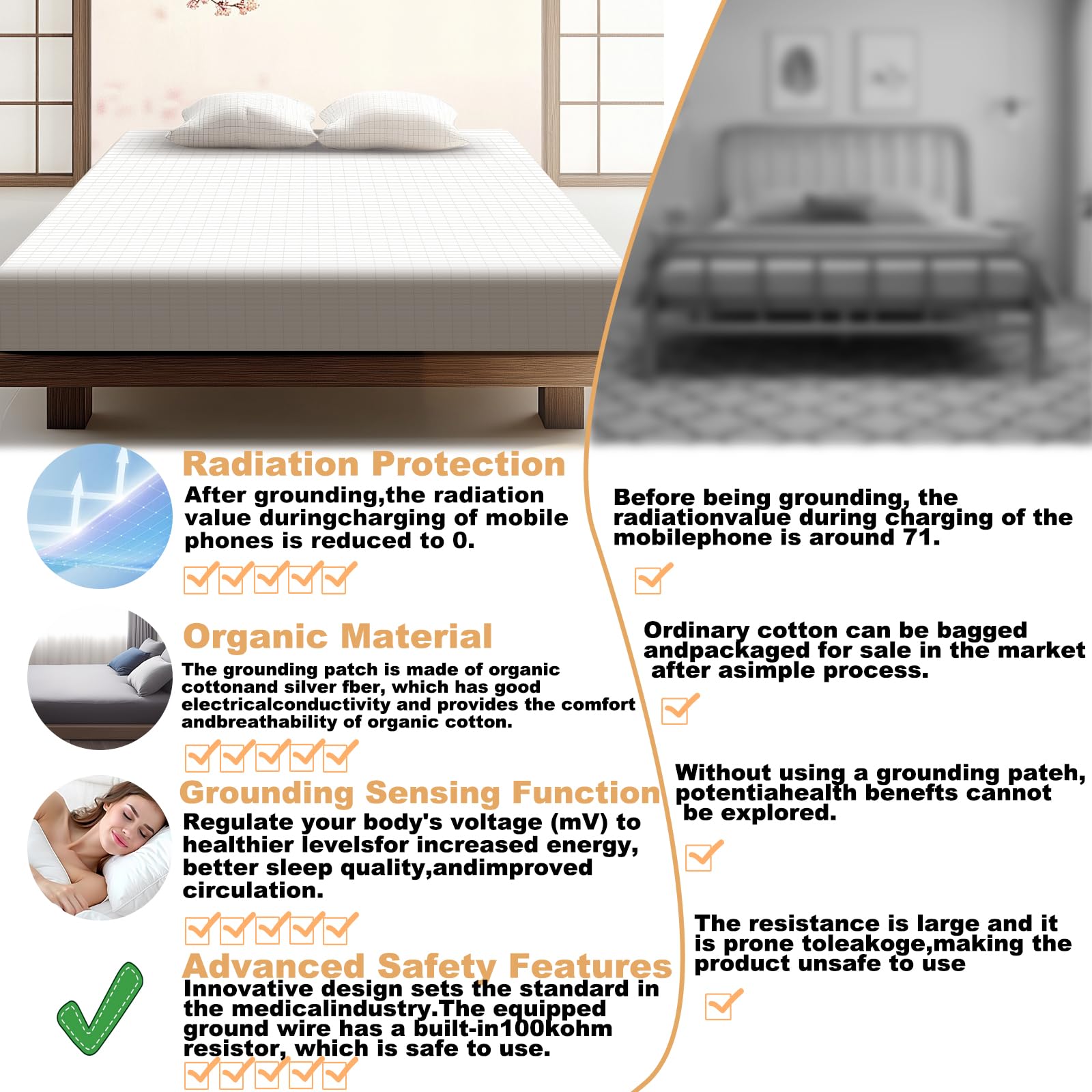 Presentamos nuestra sábana de cama GroundingWell: la solución perfecta para aliviar la fatiga y mejorar la calidad de su sueño. Elaborada con el mayor cuidado, esta sábana de cama de alta calidad está diseñada para aliviar los síntomas de sub-salud y brindarte una experiencia de sueño rejuvenecedora.Fabricada con algodón puro e infundida con un 5% de fibra de alambre de plata, nuestra sábana de cama GroundingWell en blanco y gris no solo es antiestática, sino que también contiene propiedades de conexión a tierra. Conectada a la tierra a través de un cable de tierra, neutraliza eficazmente los efectos dañinos de los campos electromagnéticos (EMF) y promueve un flujo de energía equilibrado.Con la inclusión de un bolígrafo de prueba conductiva, puedes verificar fácilmente la funcionalidad de conexión a tierra de nuestra sábana de cama. Ya sea que prefieras el lavado a máquina o el lavado a mano, esta versátil sábana de cama puede mantenerse fácilmente sin comprometer su efectividad.Experimenta los beneficios de la puesta a tierra y la conexión a tierra con nuestra sábana de cama GroundingWell, disponible en varios tamaños, incluidos Queen, King y Twin. Mejora tu entorno de sueño y crea un santuario de relajación con nuestra sábana de cama de conexión a tierra.Invierte en tu bienestar y duerme tranquilamente con GroundingWell, tu elección definitiva para sábanas de conexión.
