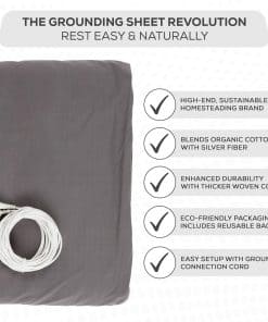 3. Material premium: La sábana está hecha con un 95% de algodón orgánico y un 5% de fibra de plata para suavidad lujosa y una conductividad óptima. Con una cuenta de 400 hilos, nuestros productos de conexión a tierra utilizan la energía natural de la tierra para mejorar tu bienestar general.