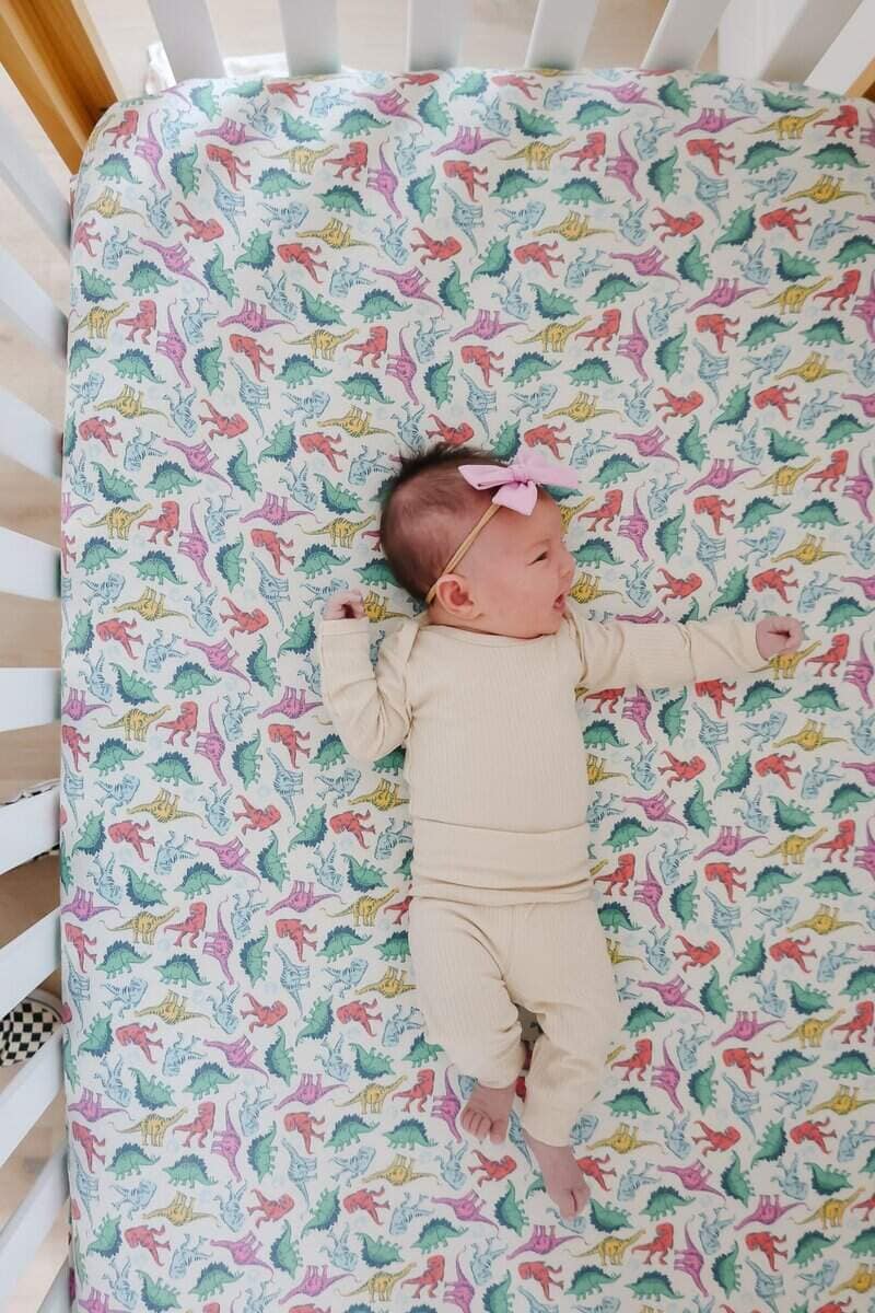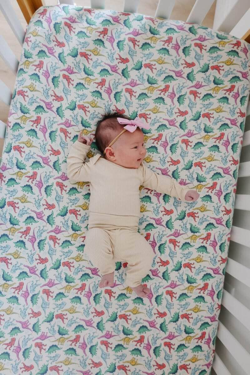 Sábanas de cuna de punto premium Copper Pearl -Dinosaurios d