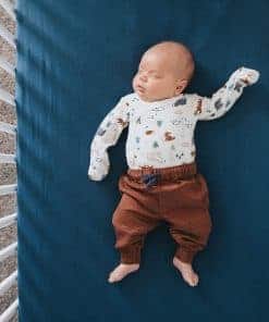 3. SE AJUSTA A COLCHONES ESTÁNDAR: Nuestras sábanas de cuna ajustadas están diseñadas para adaptarse a todos los colchones estándar para bebés. El pespunte elástico de alta calidad alrededor de toda la sábana asegura un ajuste ajustado, limpio y moderno, manteniendo a tu bebé seguro y cómodo toda la noche.