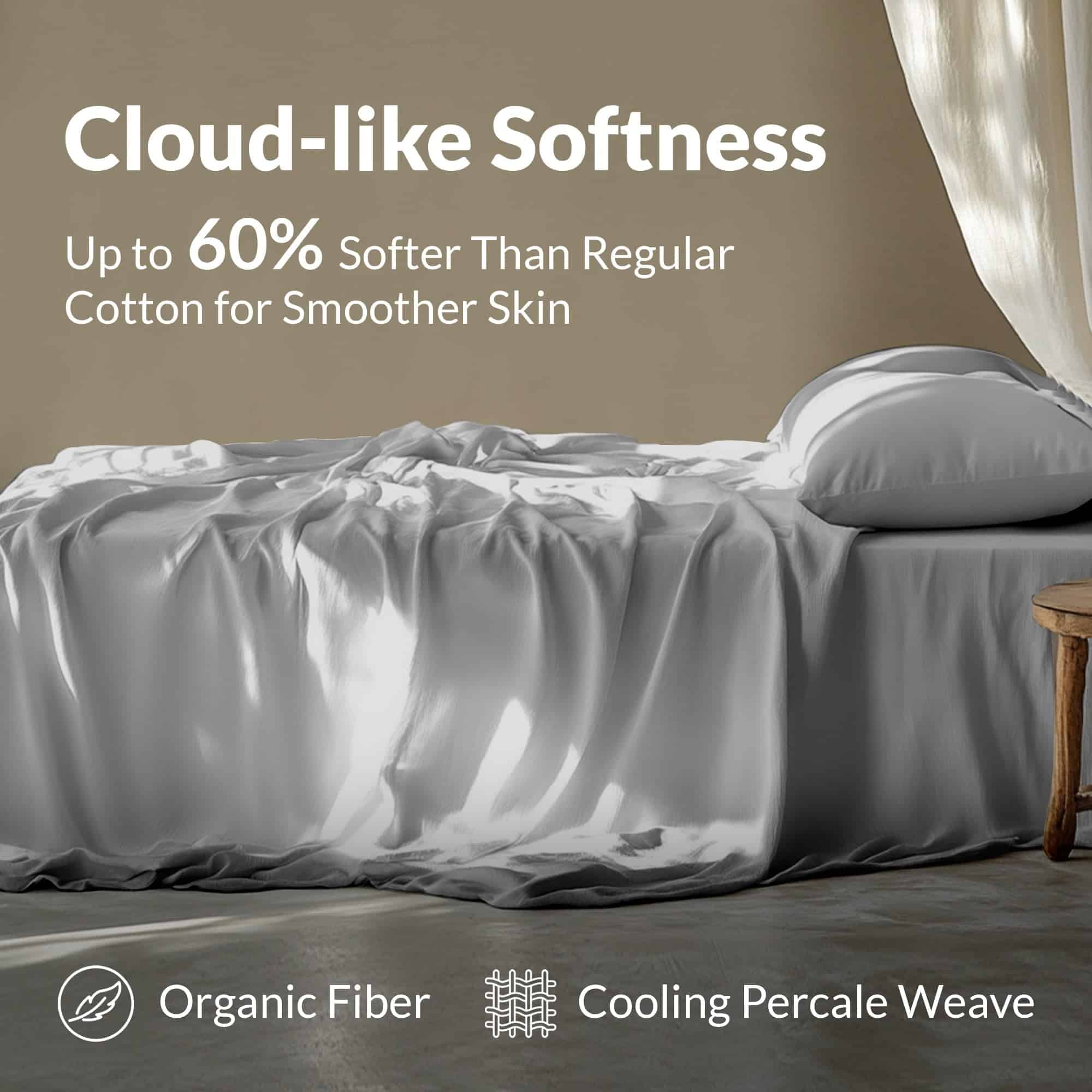 2. La Diferencia Sweave: Nuestras Sábanas de Eucalipto destacan por todas las razones correctas. Con un tejido de percal de una sola capa, estos Conjuntos de Sábanas de Tencel están diseñados para proporcionar la máxima transpirabilidad y durabilidad. El acabado mate crujiente da una sensación lujosa y similar a la de un hotel a tu cama. Las Sábanas Tencel King de Sweave proporcionan una sensación ligera y aireada para un sueño reparador. También regulan la temperatura para mantener el nivel perfecto para que duermas profundamente.