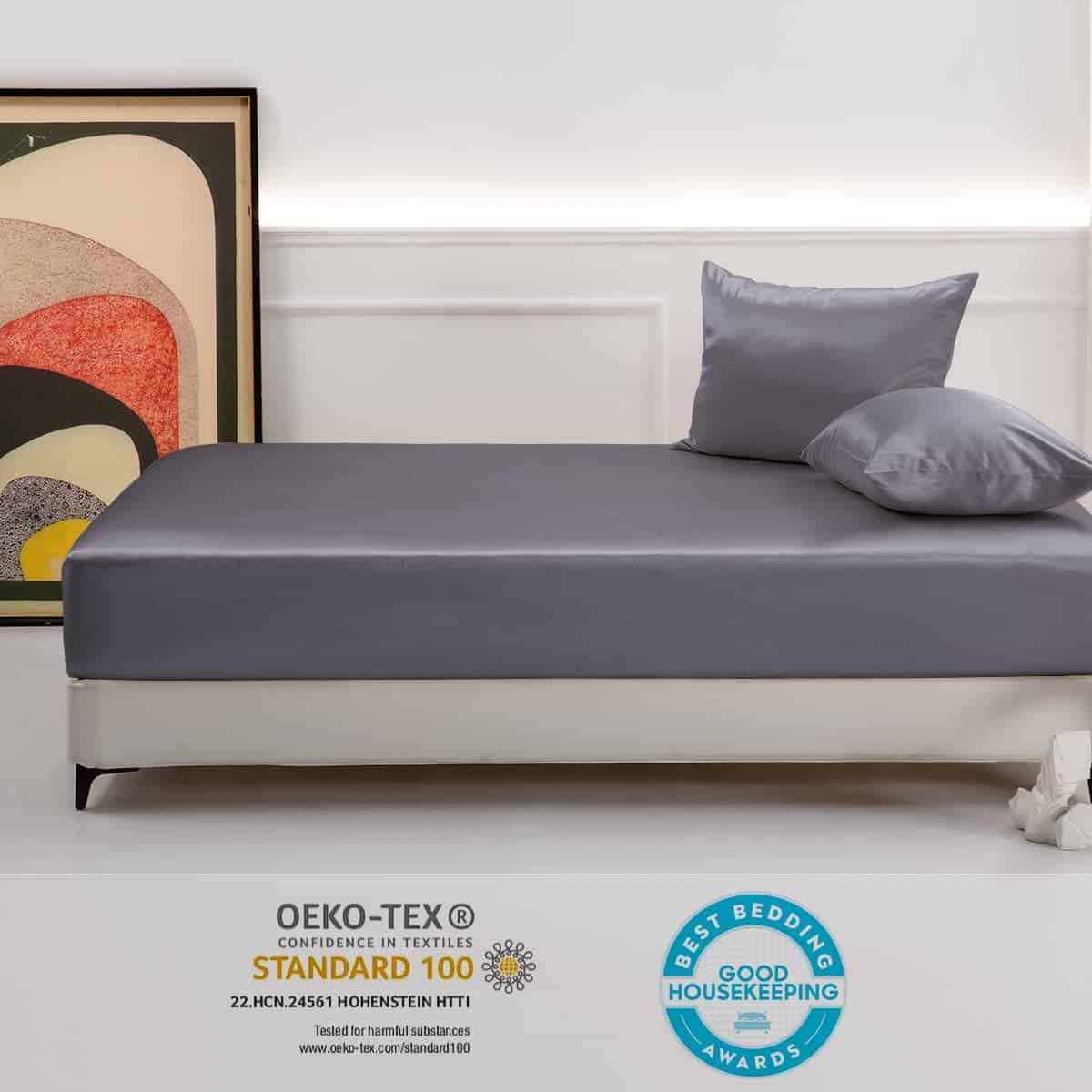 2. Alivia las afecciones de la piel: Si padeces de eczema u otras afecciones cutáneas, una sábana ajustable de seda no va a solucionar el problema, pero sí lo minimizará al proporcionar un entorno de sueño más saludable y limpio, siendo una mejor opción que el algodón. La seda es una fibra natural que no obstruye los poros, no absorbe la humedad ni productos, lo que la convierte en una opción saludable en general para la piel.