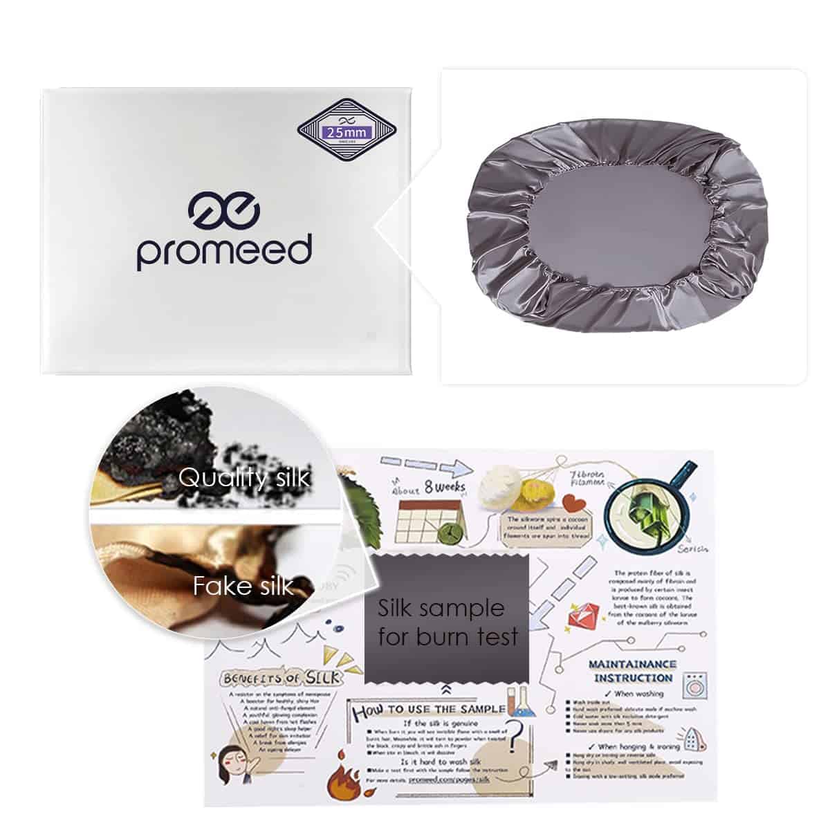 5. Fácil cuidado: Lavable a máquina en ciclo suave. Las sábanas de seda de tercera generación Promeed son más duraderas que los productos de seda o satén comunes y permanecen suaves al tacto después de muchos lavados. Recuerda usar detergente líquido pH-neutral y NUNCA secar con detergentes. Las instrucciones detalladas de cuidado están incluidas en el paquete.