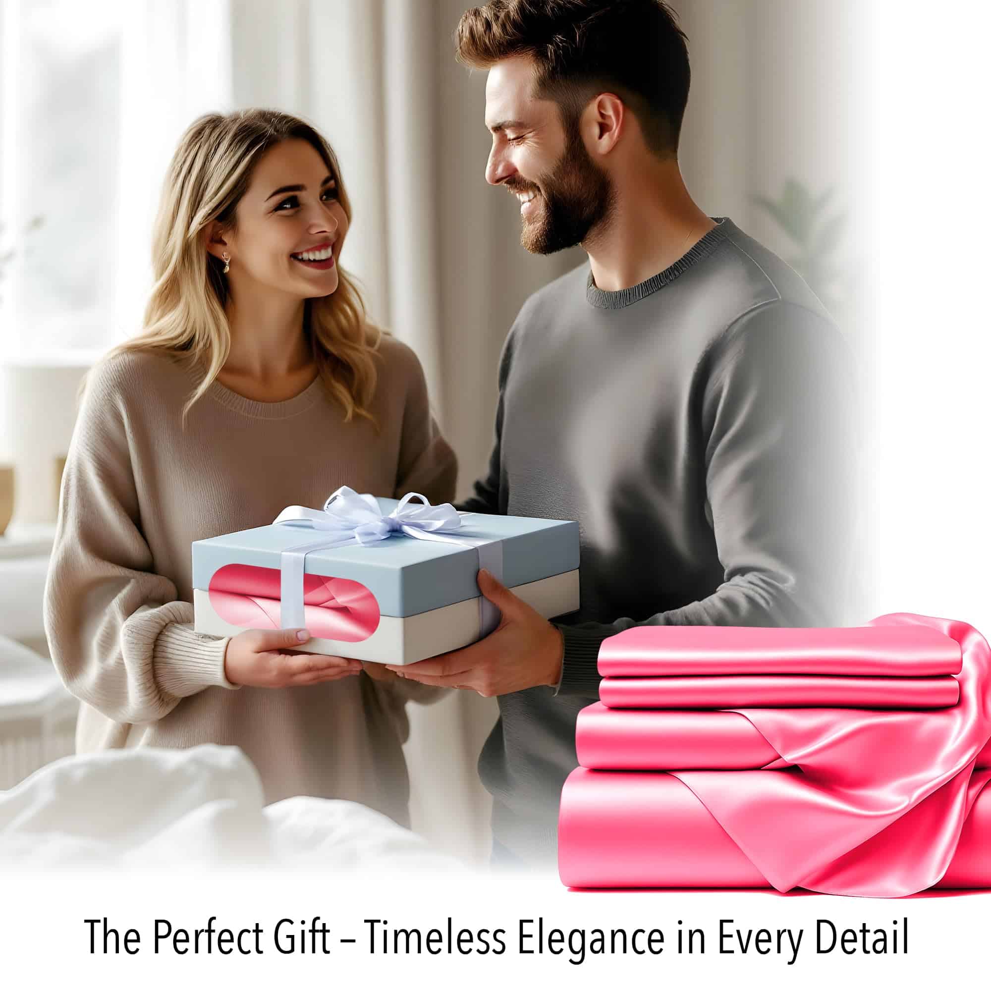 3. ¿Alguna vez soñaste con despertar impecable? Deslízate en nuestras sábanas de satén y déjalas hacer su magia en tu cabello y piel. Cada mañana, descúbrete más radiante y fresco, listo para enfrentar el día con confianza. No es solo dormir; es un ritual de belleza.