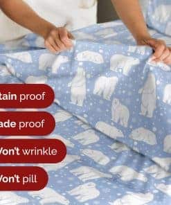1. ¡Ten unas vacaciones muy alegres con nuestro juego de sábanas navideñas de 4 piezas! 2 fundas de almohada, 1 sábana plana y 1 sábana ajustable. Sábana plana (108″ x 102″) Sábana ajustable (84″ x 72 ) 2 fundas de almohada (40 x 20 ). 2. Bolsillo profundo/ajuste fácil: ¡Ho-ho-ho, estas sábanas son profesionales! Se ajustan a colchones de hasta alrededor de 16 pulgadas de profundidad. Si tu colchón es más pequeño que 16 pulgadas, encajarán a la perfección. Muchos colchones son grandes en estos días. Creemos que este es un tamaño universal bueno que se adapta a la mayoría. 3. Siente la diferencia: ¡Si buscabas sábanas ultra suaves, las has encontrado! ¡Son transpirables, frescas como Frosty y súper sedosas suaves! Se verán geniales en cualquier habitación de tu casa; el dormitorio, habitación de invitados, habitación de niños, RV, casa de vacaciones, etc. ¡Una gran idea de regalo para hombres y mujeres, madres y padres, Día de San Valentín – Día de la Madre – Día del Padre y no olvides, ¡Navidad! 4. Microfibra cepillada de la más alta calidad: Una diferencia más liviana. Un toque más suave, más fino. ¡Estas sábanas están hechas de las microfibras doblemente cepilladas de la más alta calidad! ¡Son más suaves que las sábanas de algodón orgánico y egipcio! La maravilla virtualmente ligera de las sábanas de CGK Linen te hará volver por más. 5. ¡Suaves y asequibles! Estas son unas de las sábanas más suaves y asequibles que encontrarás. Gran relación calidad-precio en cuanto a comodidad y suavidad. A diferencia de muchas otras sábanas y materiales muy caros, estas sábanas de CGK te brindarán comodidad y suavidad a un precio razonable.