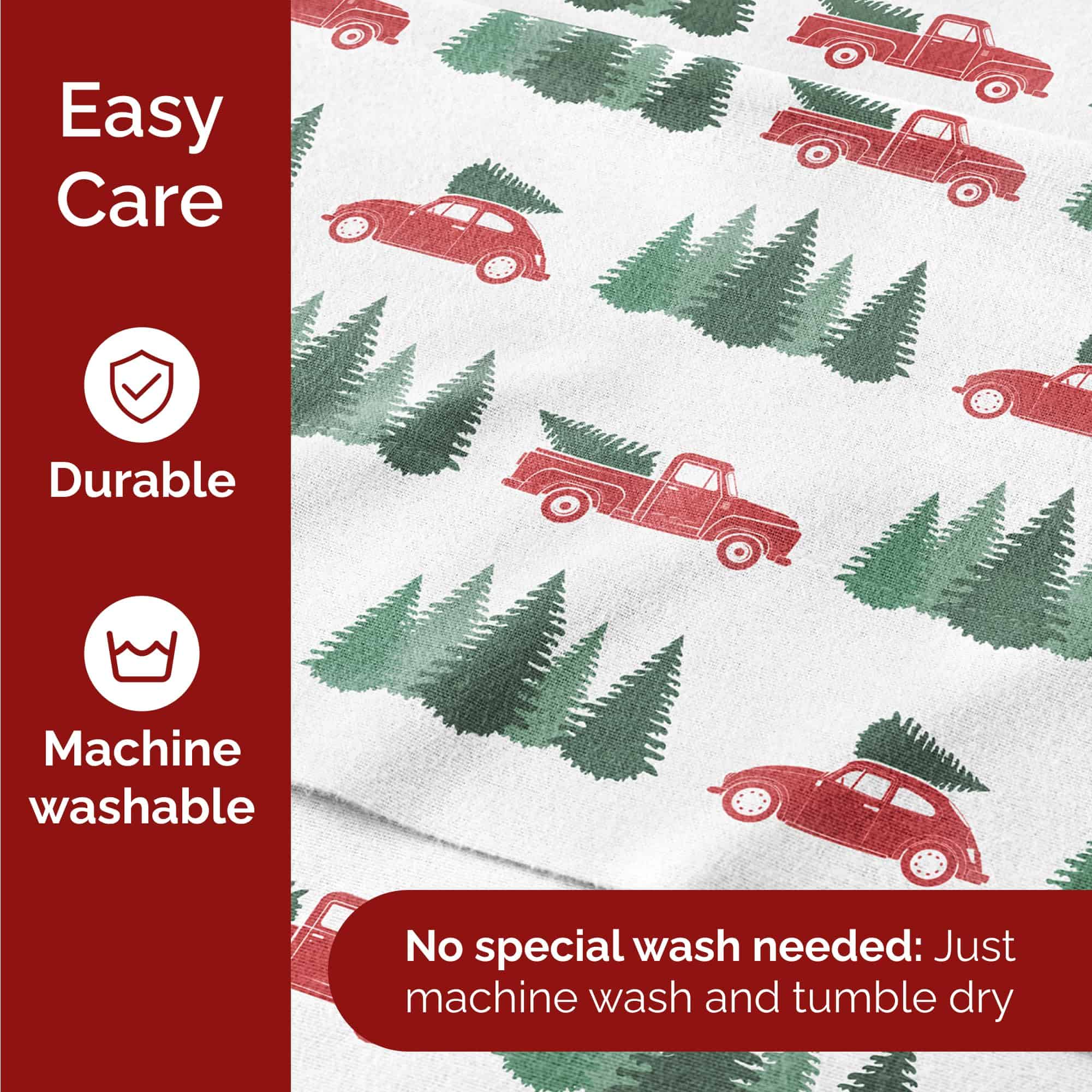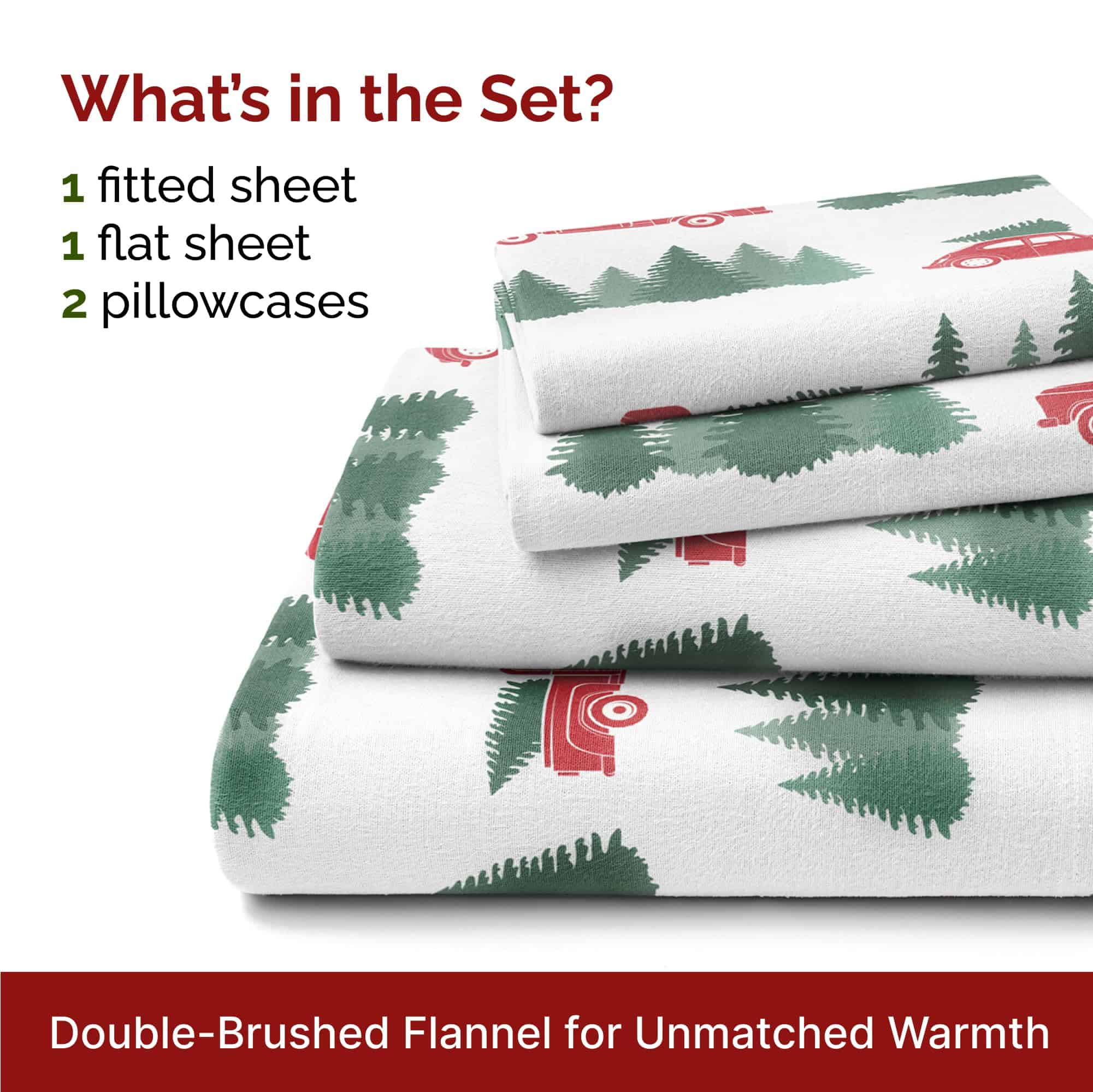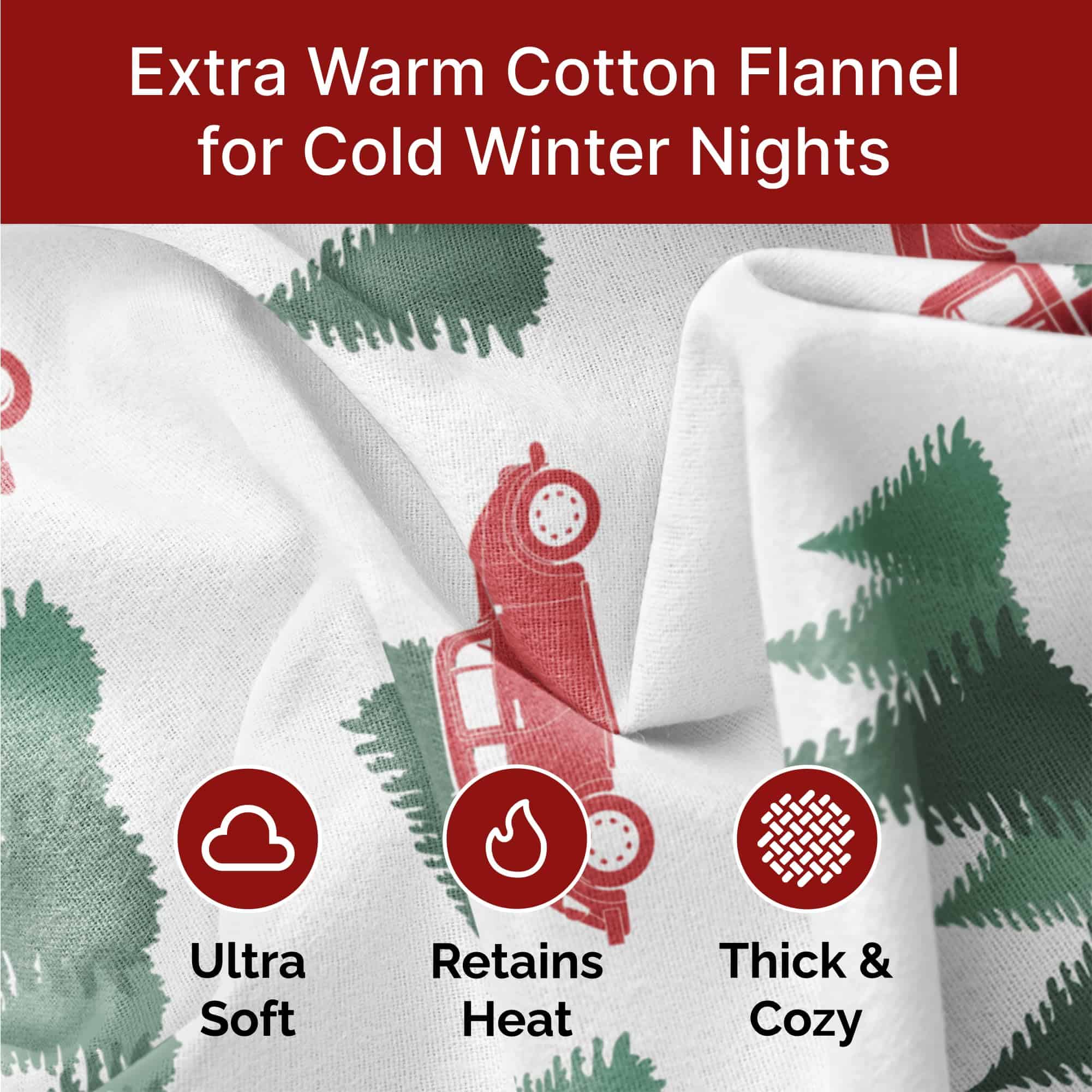 Celebre la temporada navideña con nuestras sábanas navideñas de franela 100% algodón, diseñadas para brindarle una experiencia de sueño excepcionalmente suave y acogedora. Hechas con algodón franela de doble cepillado, estas sábanas son perfectas para el invierno, con su grosor y calidez extra que lo envolverán en un abrazo festivo. Nuestras sábanas están equipadas con bolsillos profundos que se ajustan sin esfuerzo a colchones de hasta 16 de profundidad, manteniendo sus sábanas en su lugar sin problemas. Además, ofrecen una calidad premium y fácil cuidado, resistiendo el agrupamiento, la pérdida de fibras y desgarros para mantener un aspecto suave y sin arrugas año tras año. El juego de sábanas King de 4 piezas incluye una sábana plana, una sábana ajustable y dos fundas de almohada, decoradas con patrones y diseños navideños clásicos para integrarse perfectamente en su decoración festiva mientras le brindan un refugio acogedor para las noches de invierno.