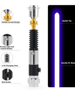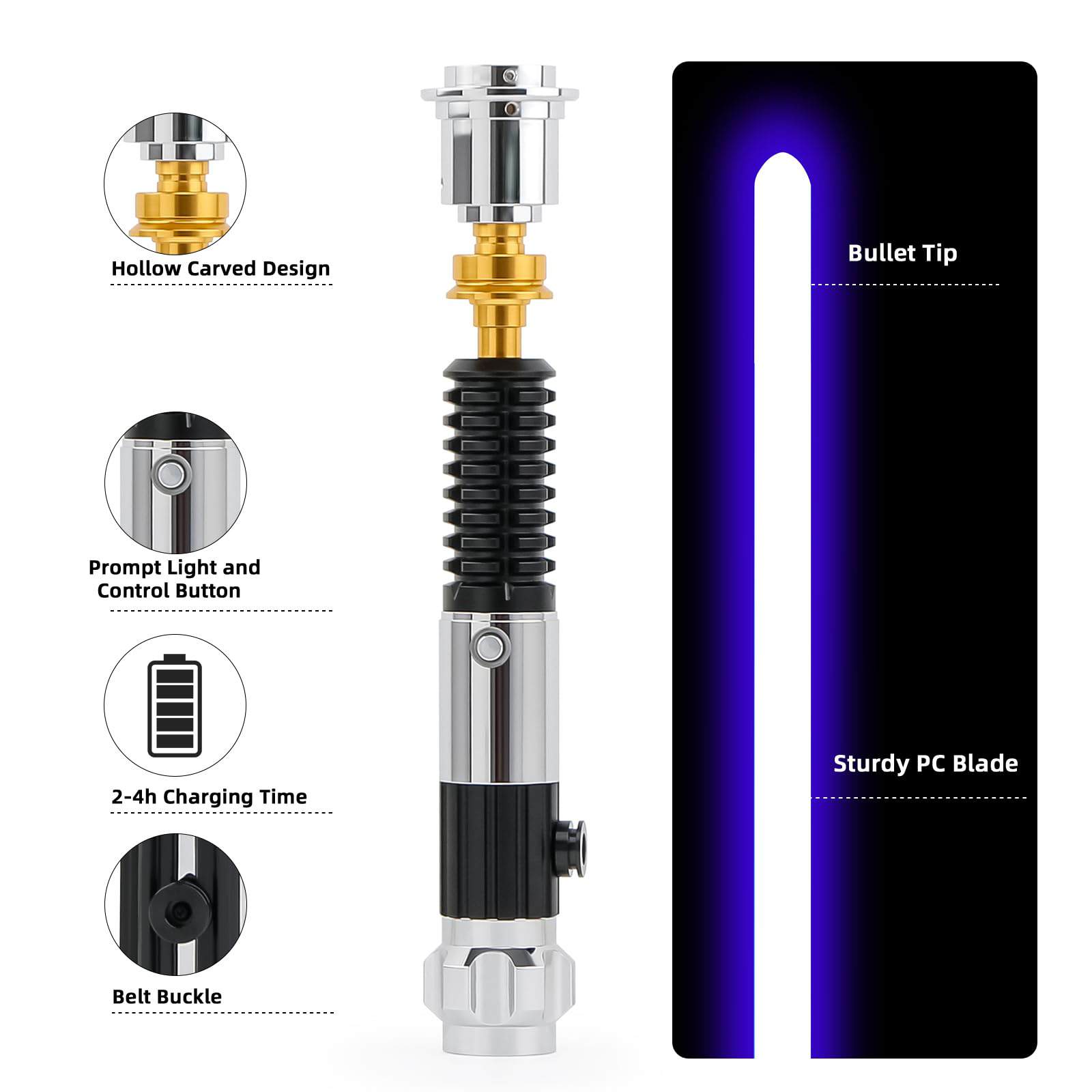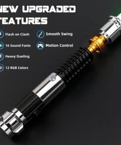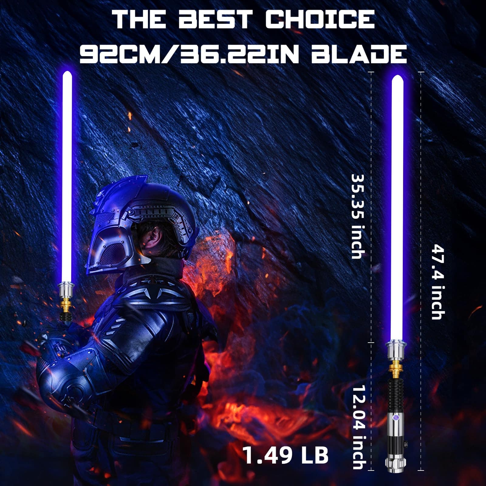 Sable de Control de Movimiento Dueling Lightsaber, Sable de Luz con Swing Suave, 16 Sets de Efectos de Sonido con 12 Colores RGB, Sables de Luz de Mango de Metal para Adultos, Regalos de Cosplay para Niños. Actualiza tu sable de luz: la tecnología de Swing Sensible Suave añade realismo al emitir ese sonido y destello de luz cada vez que la hoja del sable de luz toca algo automáticamente, el sable de luz será impactante y desviará un bláster mientras se balancea en la oscuridad. Sable de luz con 16 sonidos de película y 12 colores RGB: 16 sonidos o temas de fuente para seleccionar. 12 colores se pueden cambiar, 3 modos de llama: modo de luz completa, modo de respiración, modo de flash en colisión y función de bláster, que te permiten cruzar al mundo real de la película. Elige tu color y efectos de sonido favoritos para el duelo. Sables de luz de mango de metal para duelos pesados: el mango del sable es muy bien hecho de aluminio metálico y bien pulido. Buen peso sólido, diseño antideslizante que lo hace cómodo de sostener, resistente y difícil de deformar, difícil de rayar. Hoja duradera de PC de alto impacto, no es fácil de doblar o doblar, soporta duelos reales pesados. Sables de Luz con Función de Control de Movimiento Inteligente: Gira la hoja del sable hacia abajo y gira para encender o apagar la hoja, agita para encender la hoja mientras el sable está encendido. Simplemente enciende o apaga la hoja girando o agitando. Sostén tu sable de luz realista y adéntrate en el mundo de Star Wars convirtiéndote en el último Jedi Sith. Servicio post-venta completo de Sables de Luz: Garantizamos proporcionar 36 meses de garantía y un servicio post-venta completo, ayuda para dar ayuda o guía profesional en tiempo. Que la Fuerza te Acompañe: Sable de luz de moda premium para fiestas, deportes al aire libre, entretenimiento familiar, campamentos al aire libre, ideal para practicar duelos y jugar de forma casual. Como fiestas, Halloween, cosplay de Navidad. También es un buen regalo para cumpleaños o festival para adultos y adolescentes.