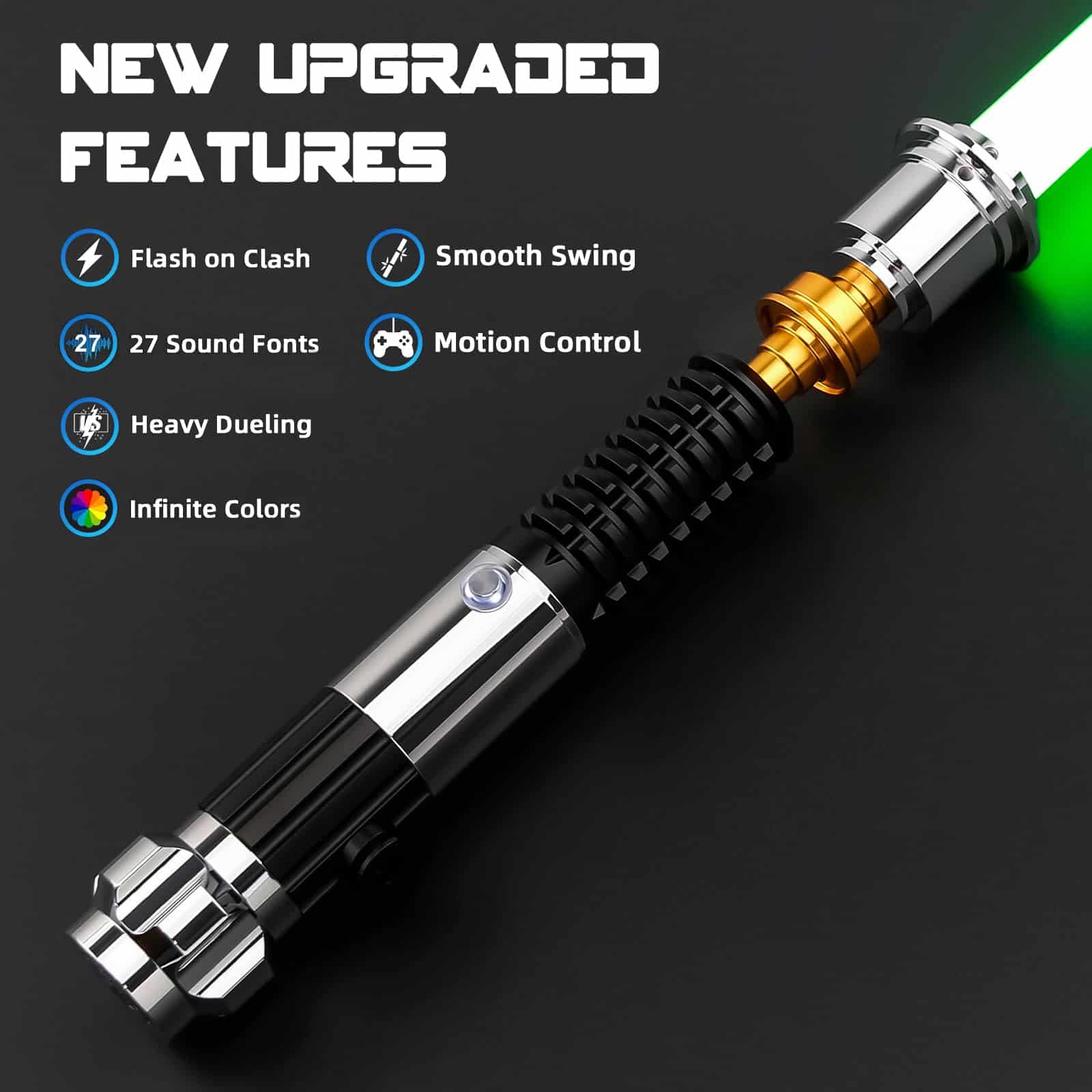 4. Sables de luz con función de control de movimiento inteligente: gire la hoja del sable de luz hacia abajo y gire para encender o apagar la hoja, gire para encender la hoja mientras el sable está encendido. Simplemente encienda o apague la hoja girando o balanceando. Sostenga su sable de luz realista y cruce al mundo de la guerra de las galaxias y conviértase en el último jedi Sith.