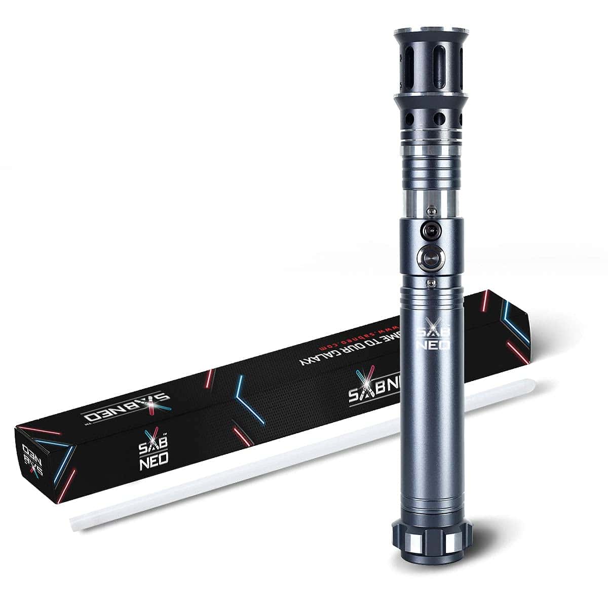 Información técnica: INFORMACIÓN IMPORTANTE Es posible que recibas el sable en modo silencioso, por favor reactiva el sonido (aumenta el volumen según el manual de instrucciones), coloca el sable en modo de espera, luego presiona durante 1 segundo y suelta el botón, el sonido se reactivará. Longitud total: 44.5 pulgadas Longitud del mango: 10.5 pulgadas Diámetro de la hoja: 1 pulgada Diámetro del mango: 1.2 pulgadas Material del mango: Aluminio Peso: 1.13 libras Material de la hoja: Policarbonato resistente óptico Batería: 3200 mah Tiempo de recarga: 2 horas Autonomía: 5 horas Los puntos mejorados: Mejora del sonido en movimiento (agregación del sensor de movimiento avanzado de última generación) 10 colores de luz diferentes (ajustables) Carga rápida USB Mango de acero inoxidable 5 modos de iluminación adicionales Choque Flash + Sonido (cuando golpeas con el sable) Empuñaduras de Metal Premium: Nuestras empuñaduras son hechas a mano por artesanos maestros. No encontrarás una mejor calidad de empuñaduras hechas a mano en la galaxia. Hoja de Duelo Pesado: ¡Nuestras hojas son las más resistentes de la galaxia! ¡Están diseñadas específicamente para duelos pesados, por lo que no tendrás preocupaciones al luchar contra tu enemigo! Tarjeta de Sonido Premium: Nuestra tarjeta de sonido premium ofrece diferentes opciones de sonido con una sensación realista con agradables movimientos.