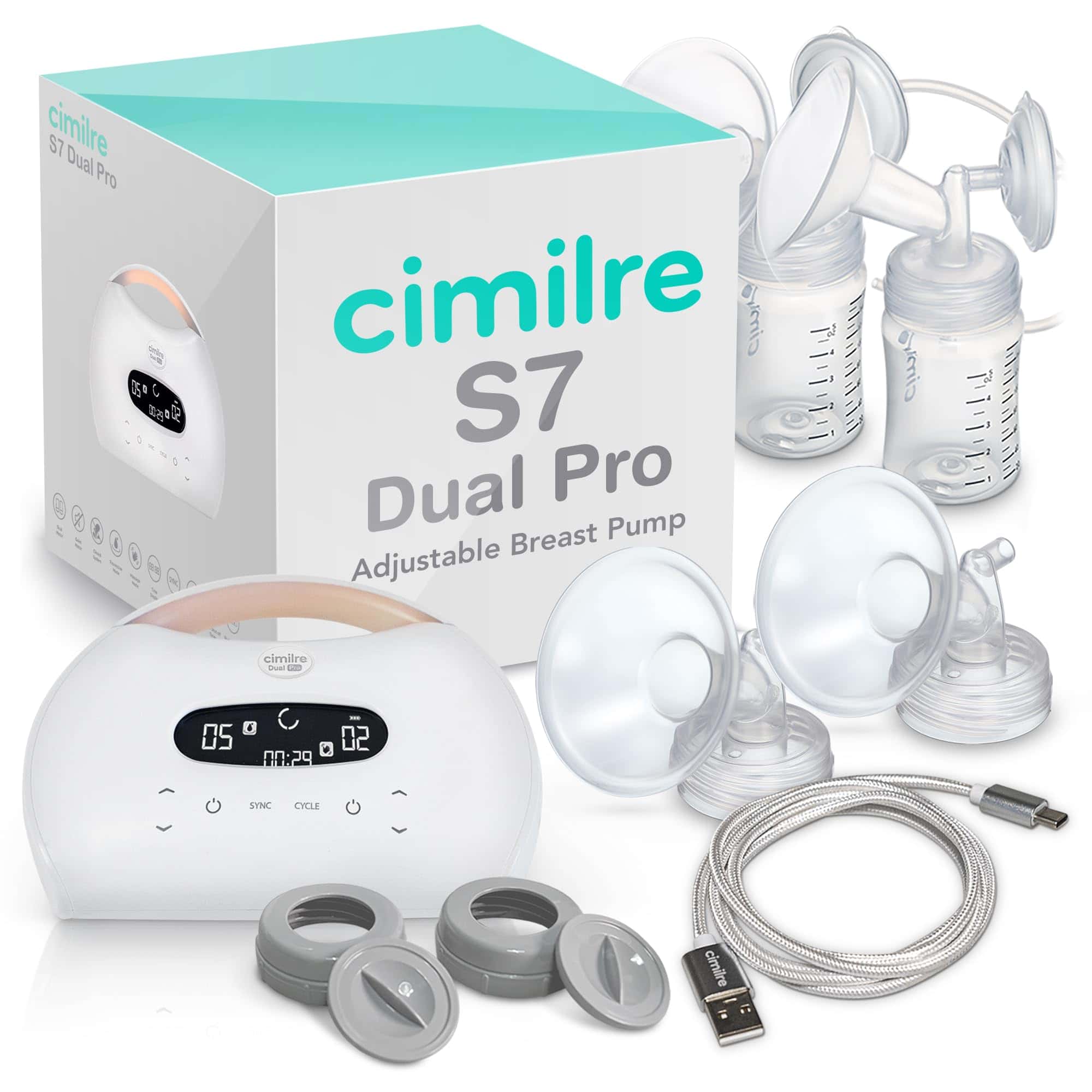 Cimilre S7 Dual Pro Rechargeable Breast Pump te brinda la libertad de controlar el bombeo de cada lado de forma independiente gracias a sus motores duales. Esta característica única te permite ajustar la fuerza de succión y las velocidades de ciclo en modo sincronizado para una extracción eficaz. Con los Sacaleches S7 Dual Pro, puedes disfrutar de sesiones de bombeo cómodas y personalizables. Su diseño ligero y portátil, combinado con una variedad de características como luz nocturna, pantalla LCD retroiluminada y apagado automático, lo convierten en una opción ideal para padres ocupados. El kit incluye todo lo necesario para comenzar, con protectores mamarios en varios tamaños para garantizar un ajuste perfecto. Asegúrate de elegir el tamaño correcto para optimizar tus sesiones de bombeo y disfrutar de una experiencia eficiente y confortable. Descubre la comodidad y conveniencia de los Sacaleches Eléctricos Dobles S7 Dual Pro por Cimilre.