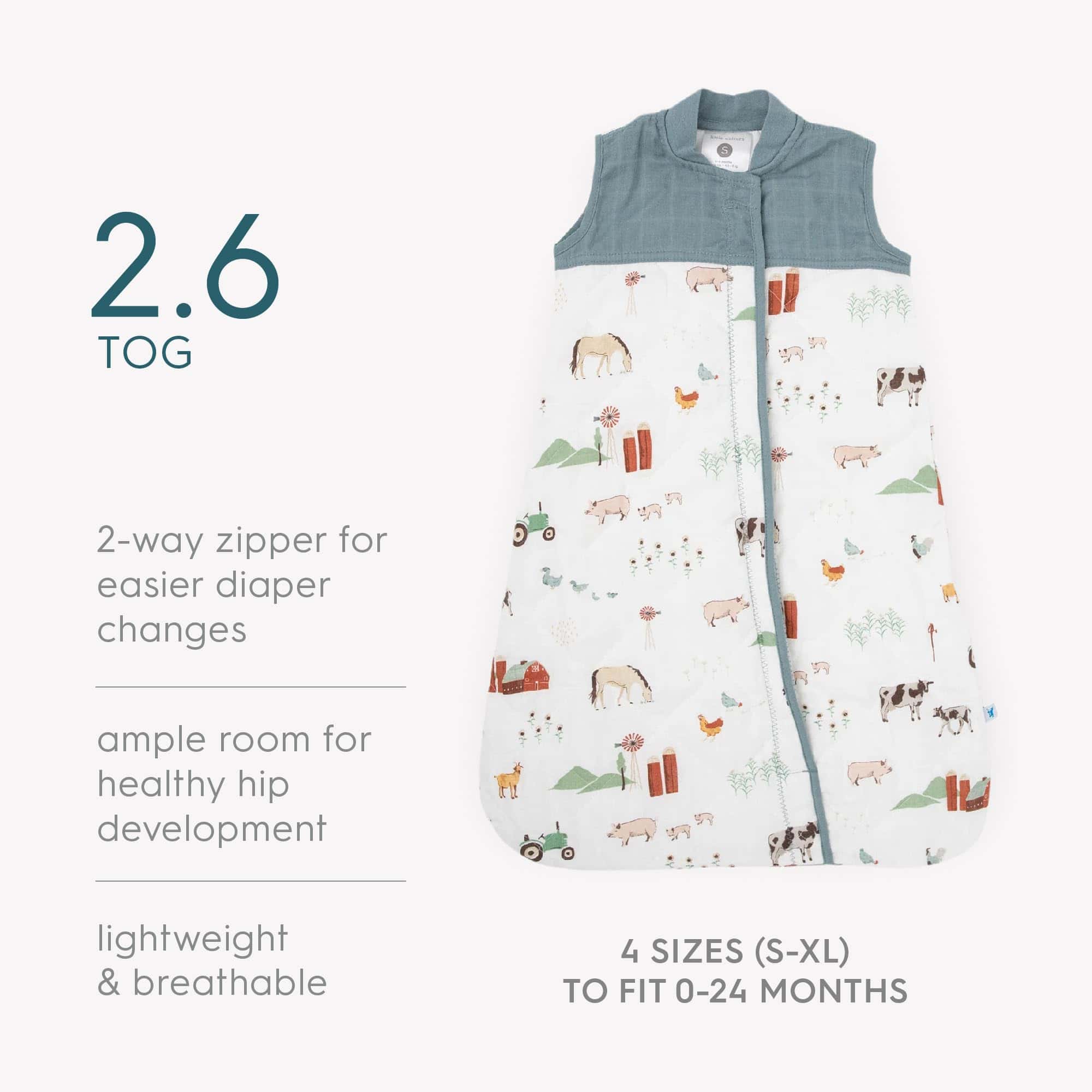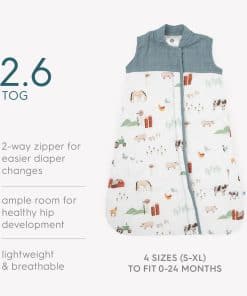 El Saco de Dormir Acolchado Little Unicorn para bebés de 0-6 meses es ideal para asegurar un sueño seguro y cómodo. Está hecho de suave y transpirable muselina de algodón que proporciona una sensación reconfortante. Cuenta con una cremallera bidireccional que facilita el cambio de pañales durante la noche. Con un diseño encantador de granja, este saco de dormir es una excelente opción para los más pequeños. ¡Proporciona a tu bebé la comodidad y seguridad que se merece con este saco de dormir acolchado de Little Unicorn!