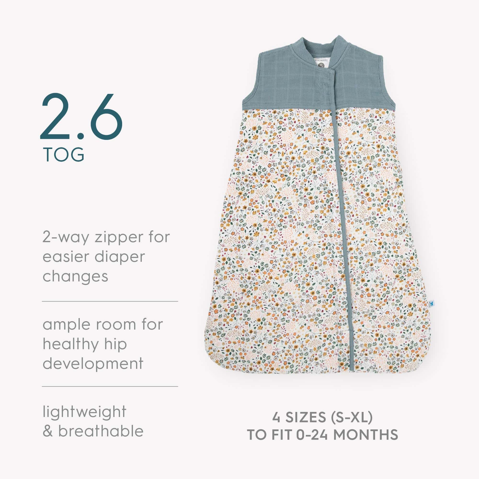 Saco de dormir acolchado Little Unicorn diseñado para bebés de 0-6 meses. Fabricado con muselina de algodón suave y transpirable para proporcionar un sueño seguro y cómodo. Incluye una cremallera de dos vías para facilitar el cambio de pañales durante la noche. El TOG de 2.6 ayuda a mantener al bebé abrigado en climas más fríos. Disfruta de la tranquilidad de saber que tu bebé está dormido de manera segura y cómoda.