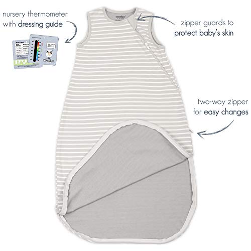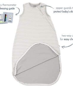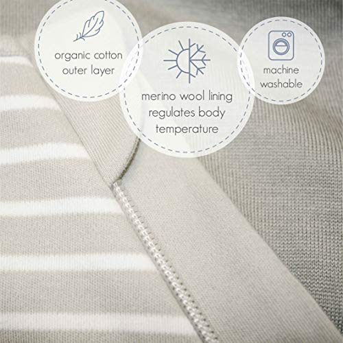 ¿Estás preocupado por qué peso de saco de dormir para bebés usar y si tu bebé tendrá demasiado calor o frío mientras duerme? Con Woolino no hay necesidad de preocuparte, porque la lana merino excepcionalmente transpirable regula naturalmente la temperatura corporal del bebé para asegurar que duerma cómodamente toda la noche. Este lujoso saco de dormir para bebés también te ahorrará comprar muchos otros sacos de marca con clasificaciones TOG porque se puede usar todo el año. Con esta manta portátil, tu hijo tendrá un sueño increíblemente cómodo, lo que te dará tranquilidad y una buena noche de sueño también. 100% Natural: forro de lana merino australiana SUAVE COMO LA SEDA y exterior de algodón orgánico. Puede usarse en las 4 estaciones – adecuado para temperatura ambiente de 17-25°C. A diferencia de cualquier otra fibra, la lana merino REGULA LA TEMPERATURA CORPORAL manteniendo al bebé calentito cuando hace frío y fresco cuando hace calor. Protecciones en la cremallera para proteger la piel del niño y evitar que mastique la cremallera. LAVABLE EN MÁQUINA. Termómetro de nursery con guía de vestimenta incluido. Cumple con todos los requisitos de seguridad para niños de la CPSC de EE. UU. Lana Merino con certificado Woolmark. Algodón orgánico certificado GOTS. Todos los tejidos y accesorios cuentan con certificación OEKO-Tex 100 (probados para 100 sustancias nocivas).