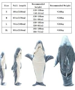 Disponible en diferentes tamaños para adaptarse tanto a adultos como a niños, este saco de dormir de tiburón es fácil de cuidar, se puede lavar a máquina y secar a baja temperatura. ¡Hazte con él y sumérgete en la diversión y la calidez que ofrece este increíble saco de dormir de tiburón!