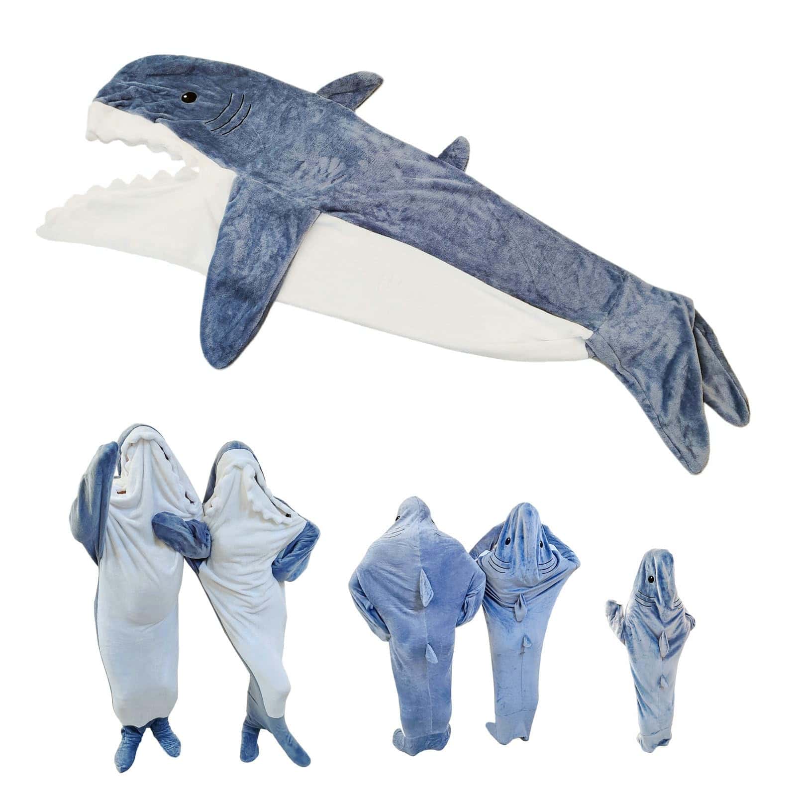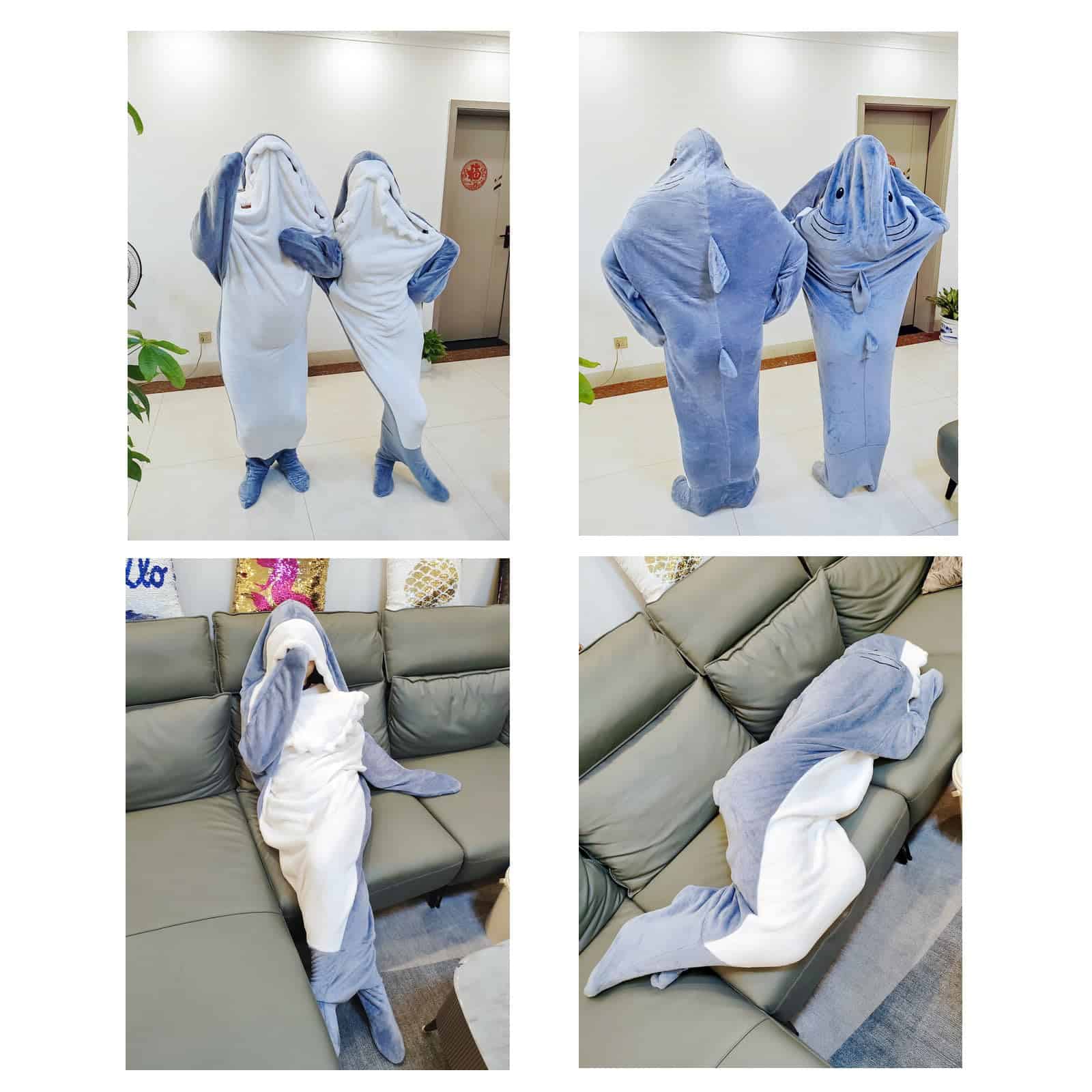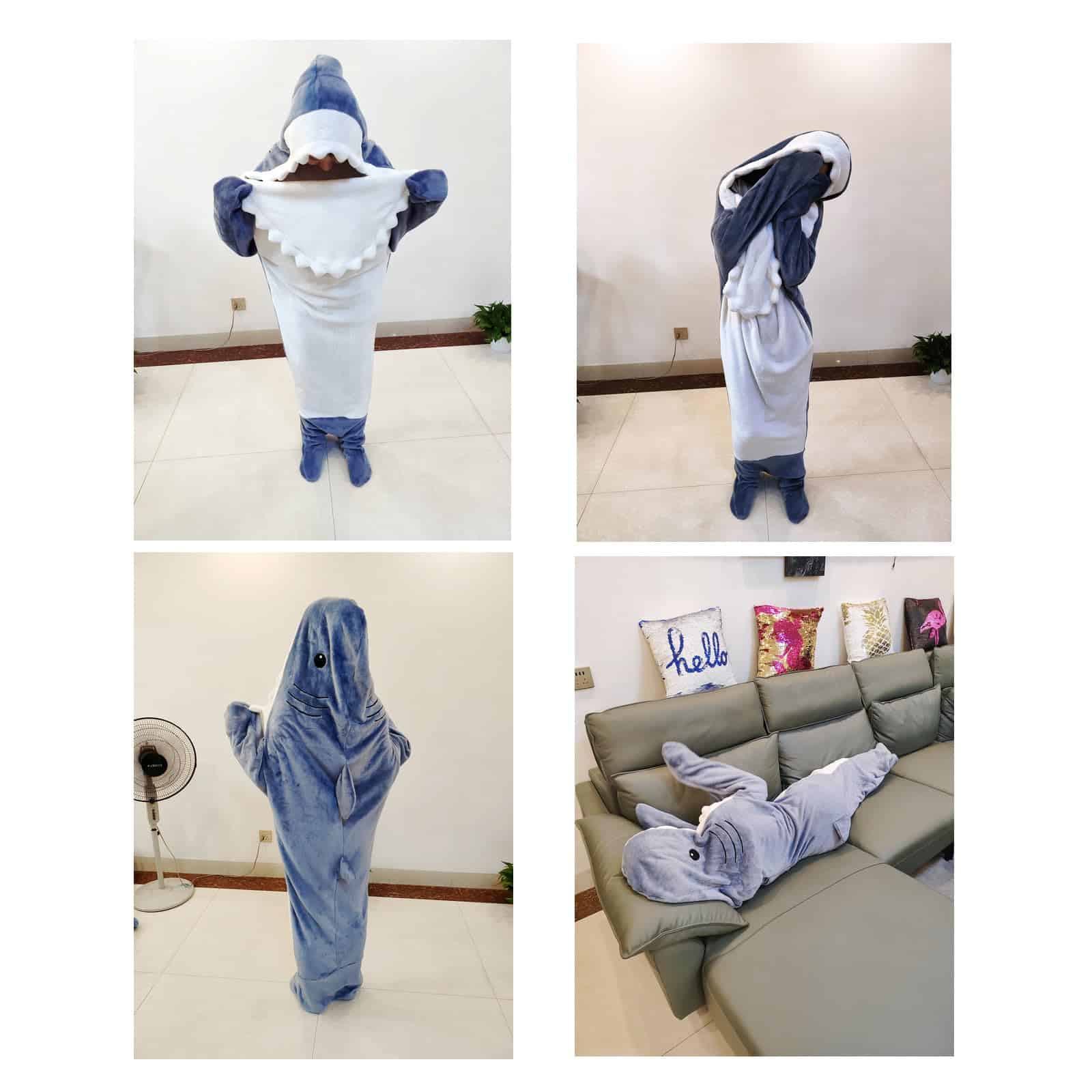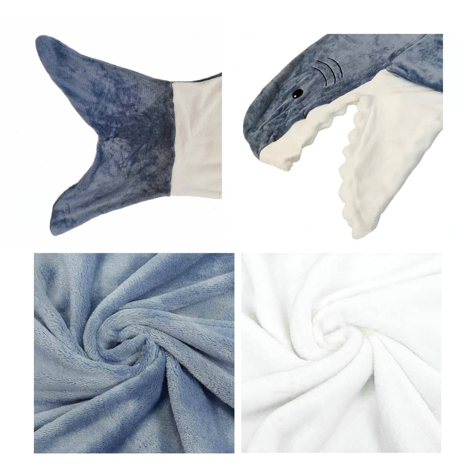 Este saco de dormir con capucha de tiburón es perfecto para mantenerte cálido y acogedor en diversas actividades y ocasiones. El diseño único en forma de tiburón te brinda la experiencia de ser tragado por un tiburón gigante, lo cual es divertido y emocionante. Hecho de material de franela súper suave, te proporciona comodidad y calidez mientras ves TV, lees un libro o juegas.