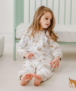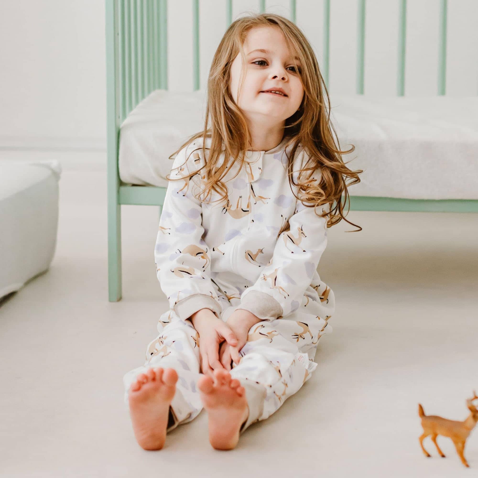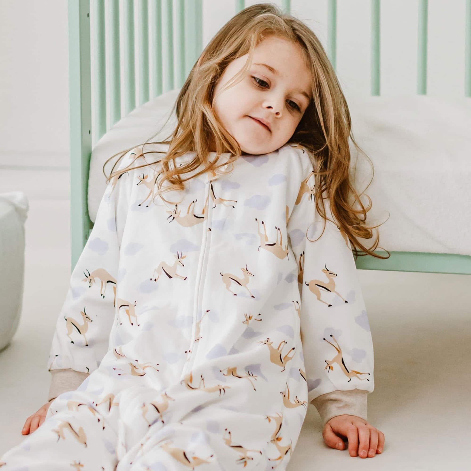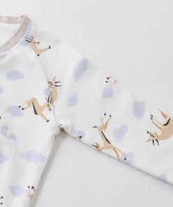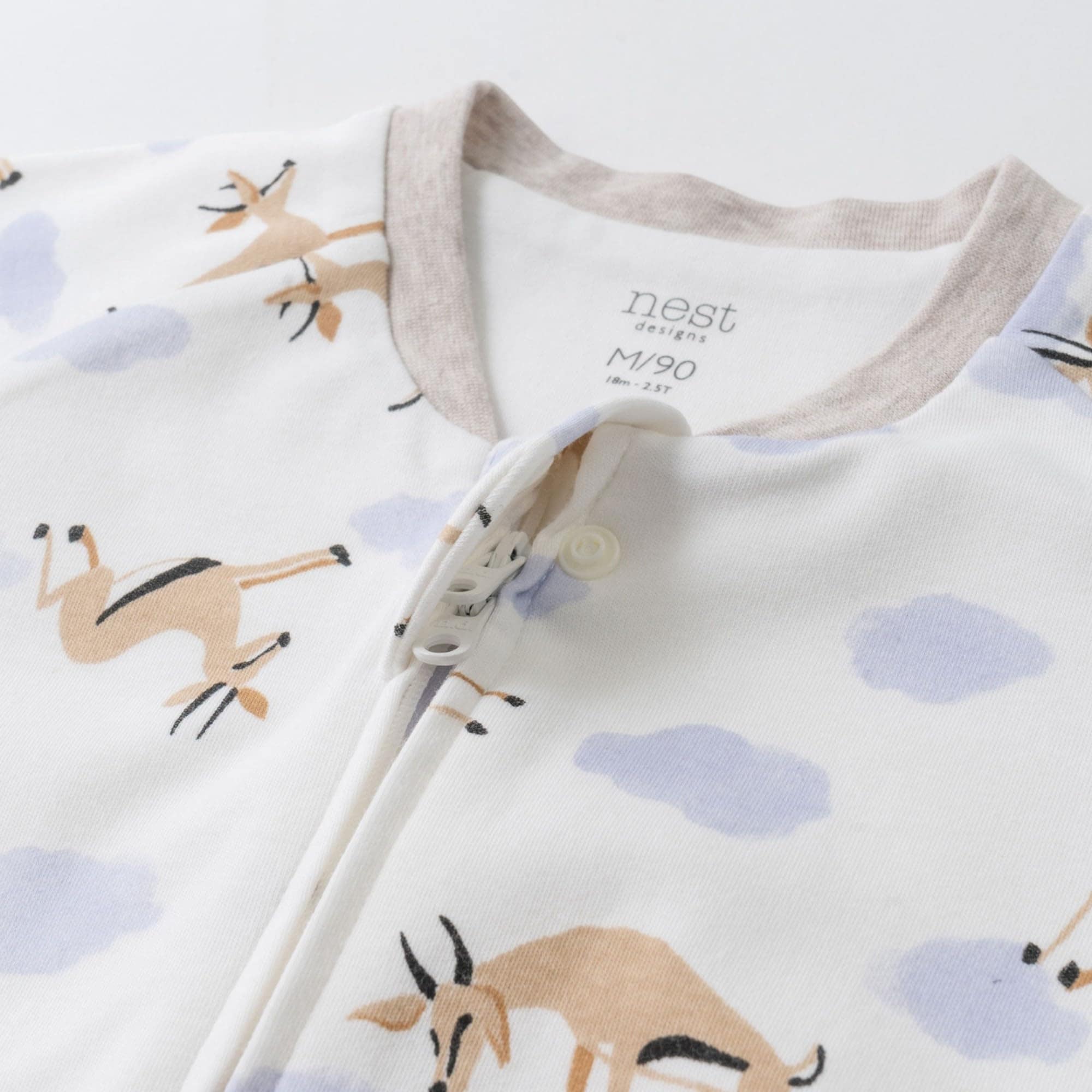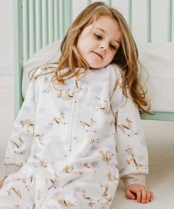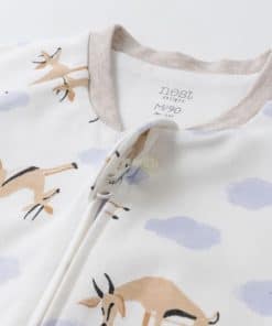 Saco de dormir con mangas de algodón orgánico de Nest Designs, diseñado para brindar comodidad a tu pequeño durante toda la noche. Hecho de 100% algodón orgánico certificado GOTS, este saco de dormir tiene una clasificación de 1.0 TOG, lo que lo hace ideal para todo el año. La cremallera de dos vías con solapa protectora facilita el vestir y desvestir, mientras que los broches en la parte inferior permiten cambios de pañal rápidos y convenientes. Además, los puños enrollables en los tobillos mantienen los pies de tu pequeño calientes y acogedores. Disponible en el encantador color Gazelle Sky y en tamaño 2T-3T.