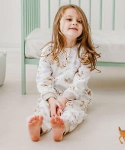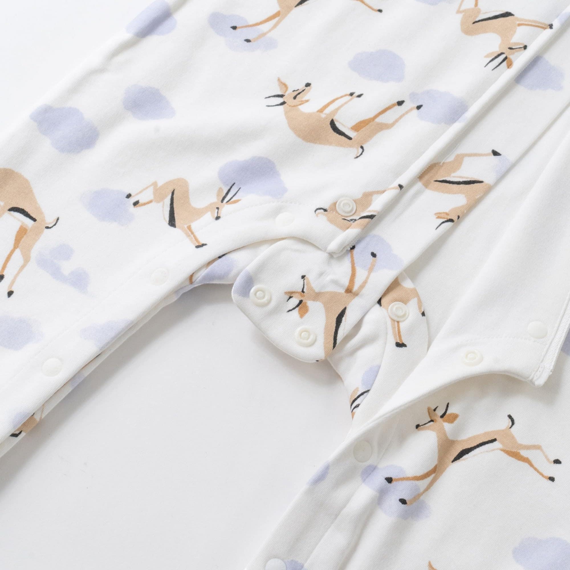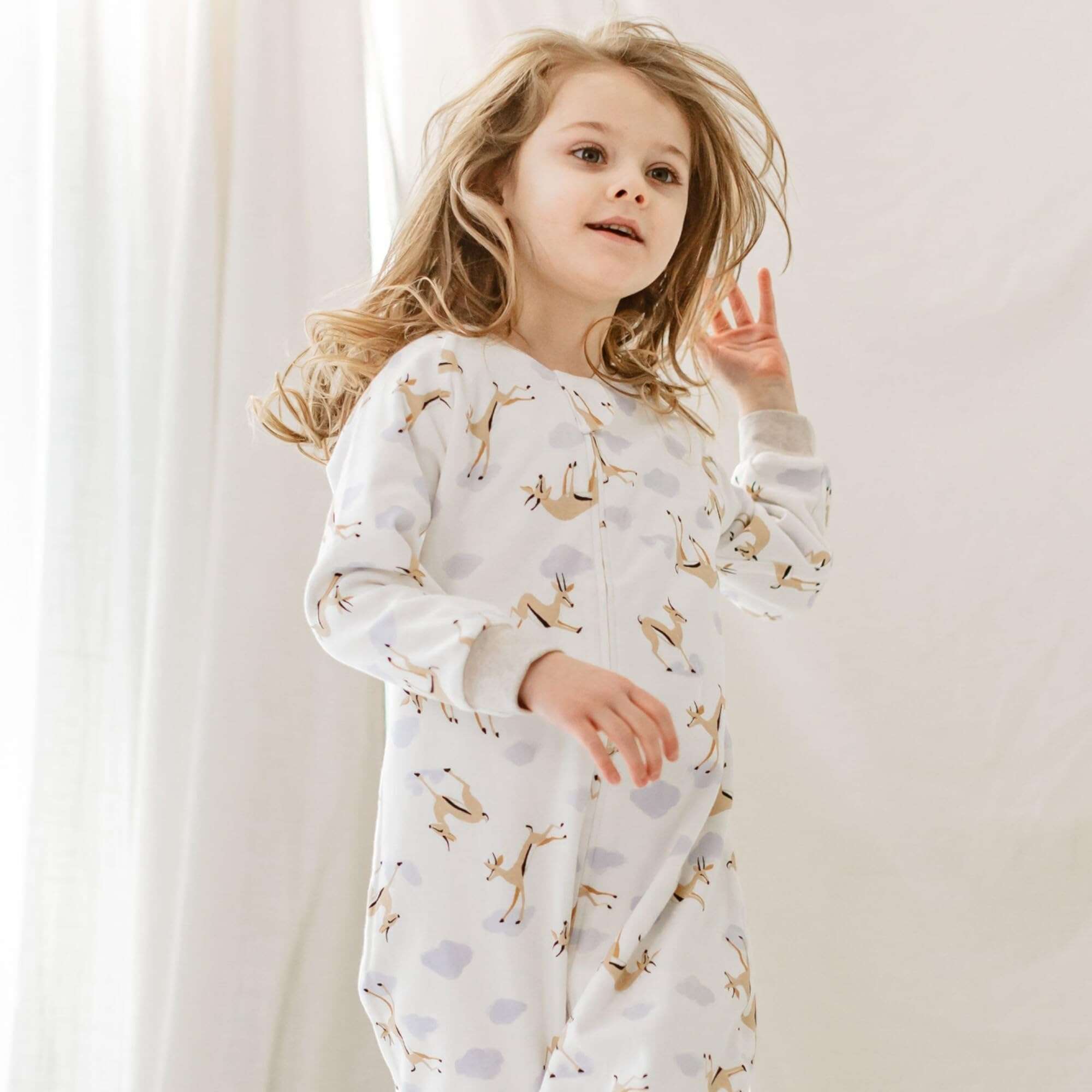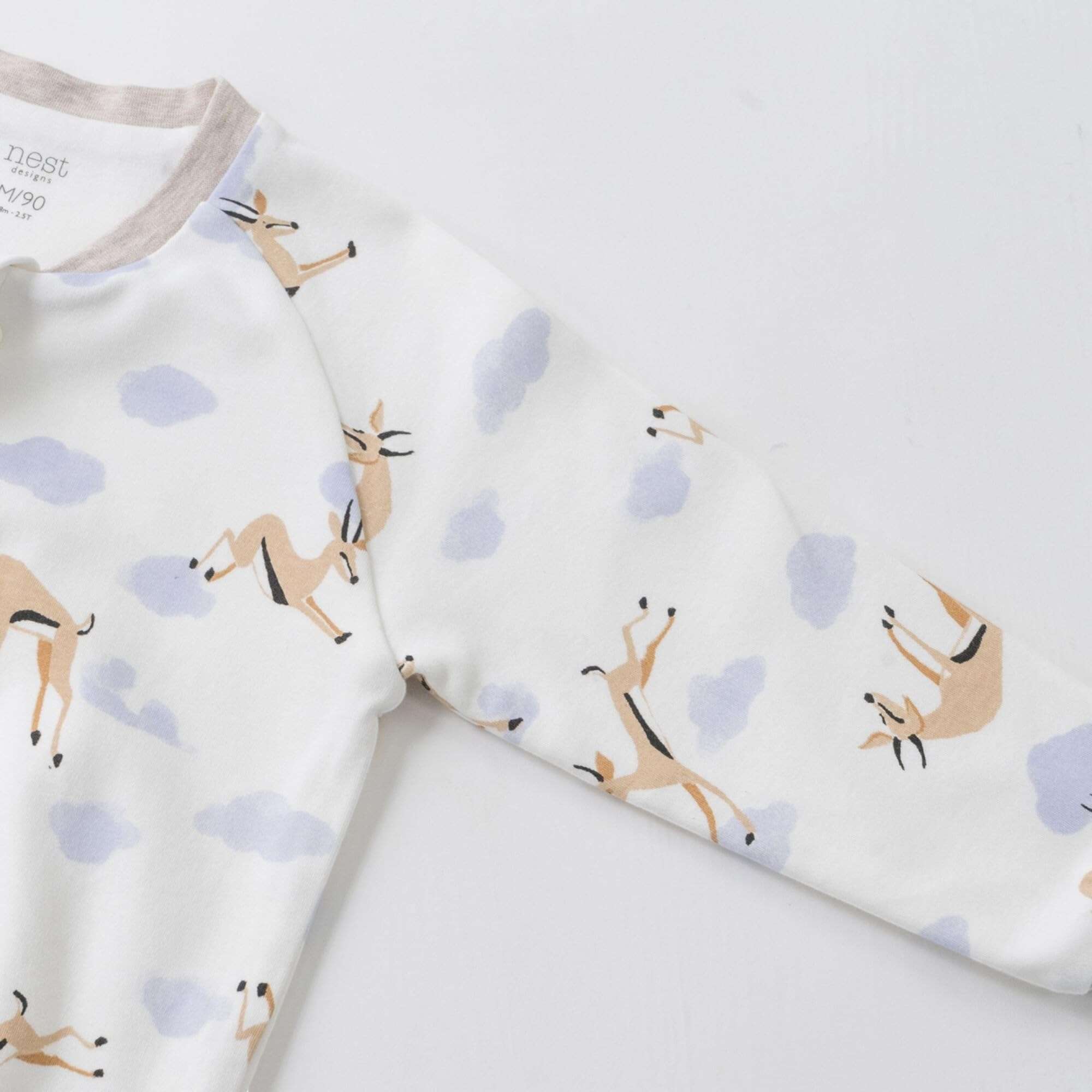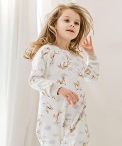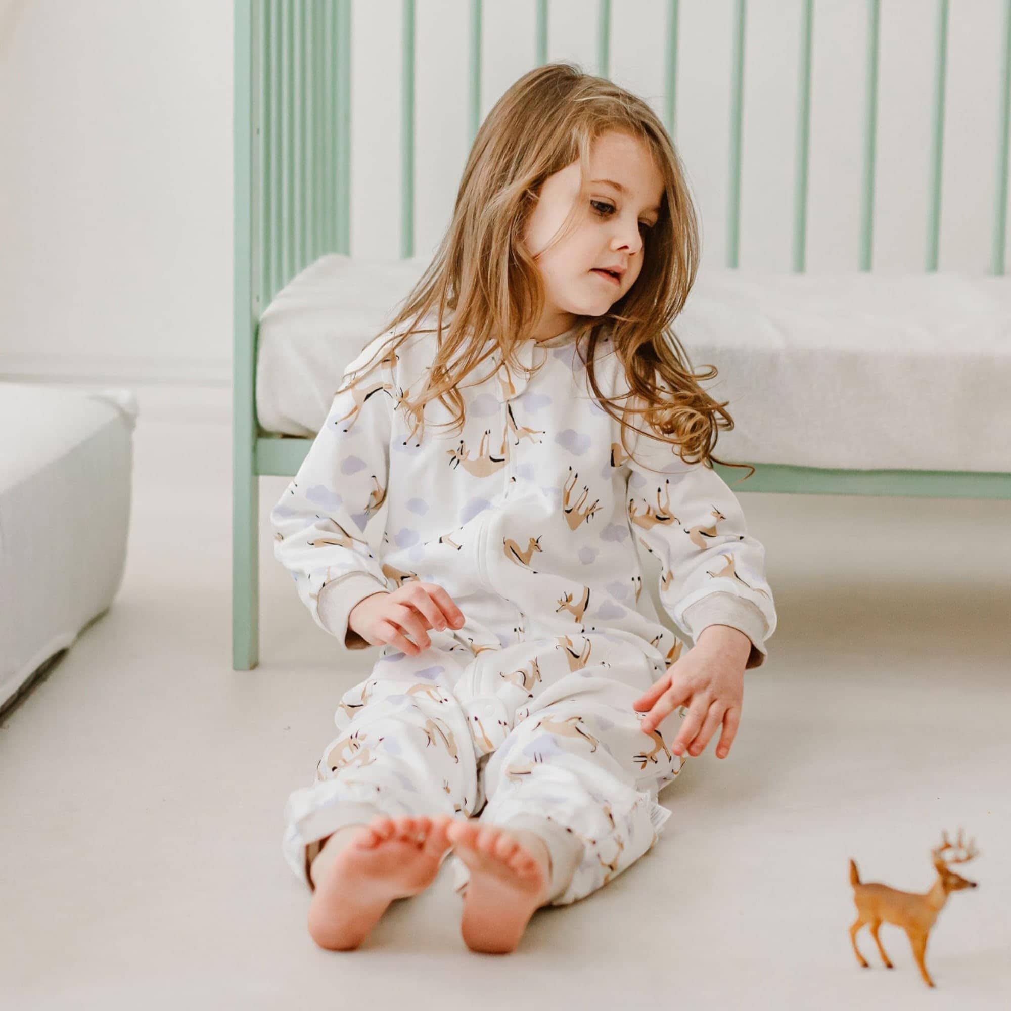 Saco de dormir con mangas de algodón orgánico de Nest Designs, diseñado para brindar comodidad a tu pequeño durante toda la noche. Hecho de 100% algodón orgánico certificado GOTS, este saco de dormir tiene una clasificación de 1.0 TOG, lo que lo hace ideal para todo el año. La cremallera de dos vías con solapa protectora facilita el vestir y desvestir, mientras que los broches en la parte inferior permiten cambios de pañal rápidos y convenientes. Además, los puños enrollables en los tobillos mantienen los pies de tu pequeño calientes y acogedores. Disponible en el encantador color Gazelle Sky y en tamaño 2T-3T.
