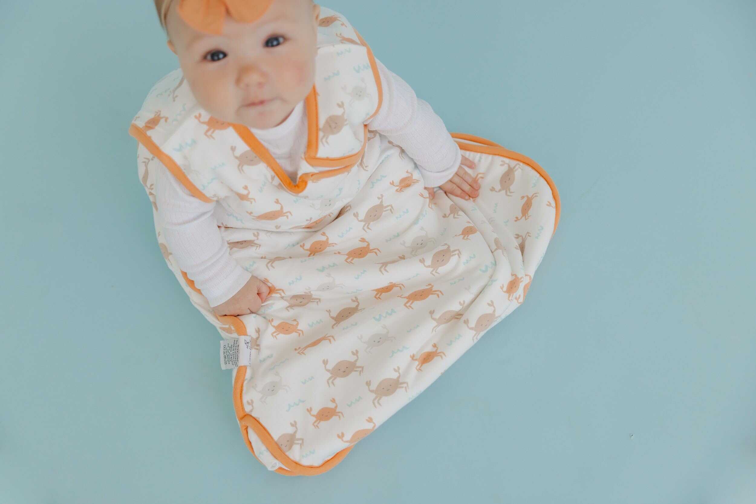 2. Cálido y acogedor: Con una clasificación térmica general (TOG) de 1.70, nuestro saco de dormir envolvente proporciona la cantidad justa de calor para su uso durante todo el año. Este saco de dormir ayudará a su bebé a dormir profundamente durante la noche en temperaturas entre 65 y 75 grados F.