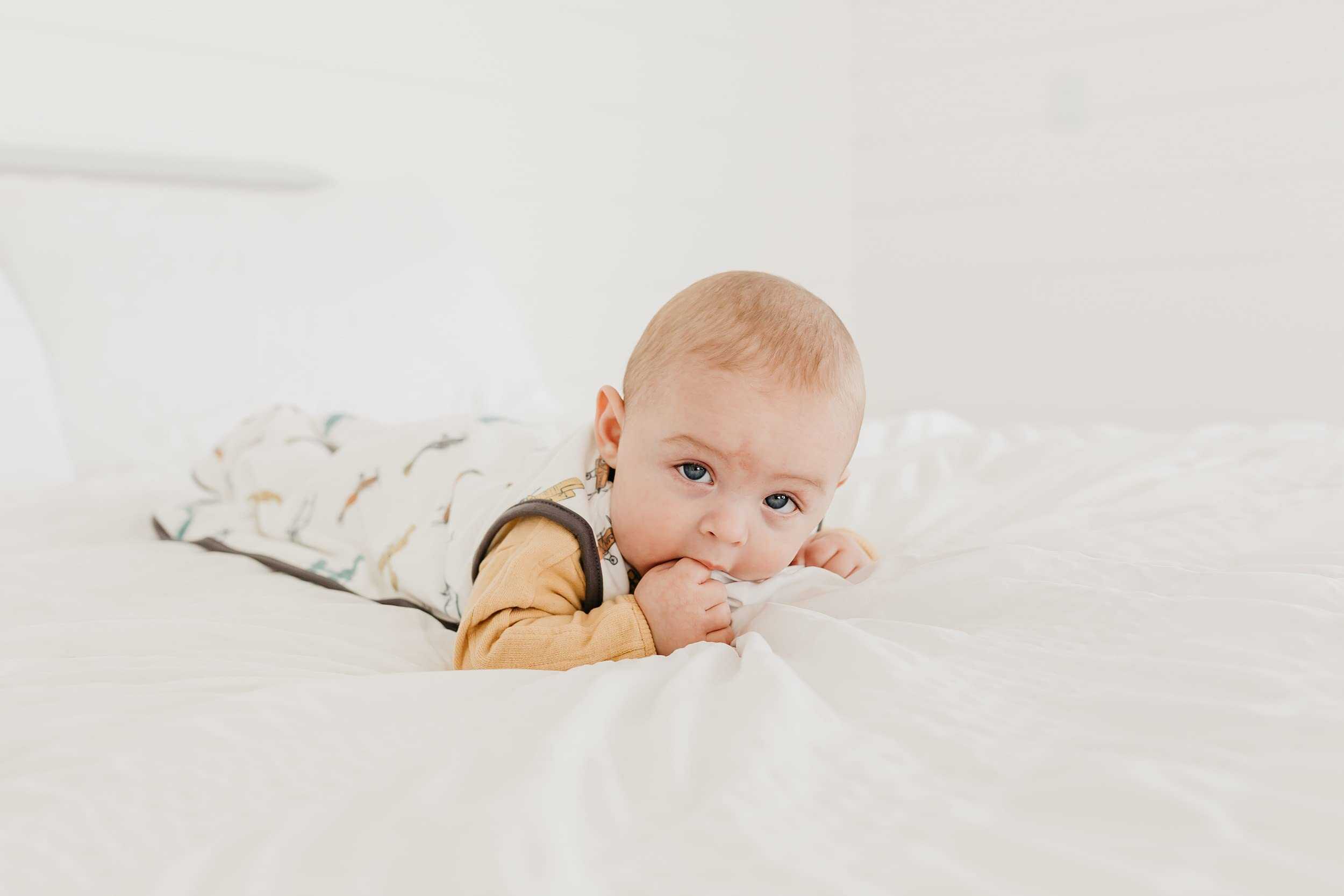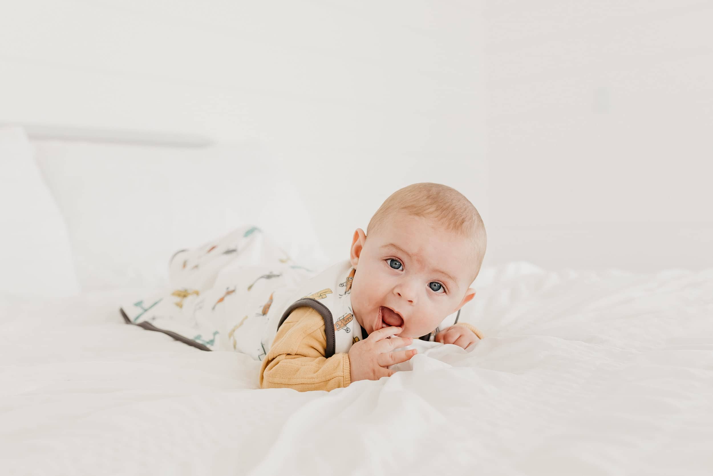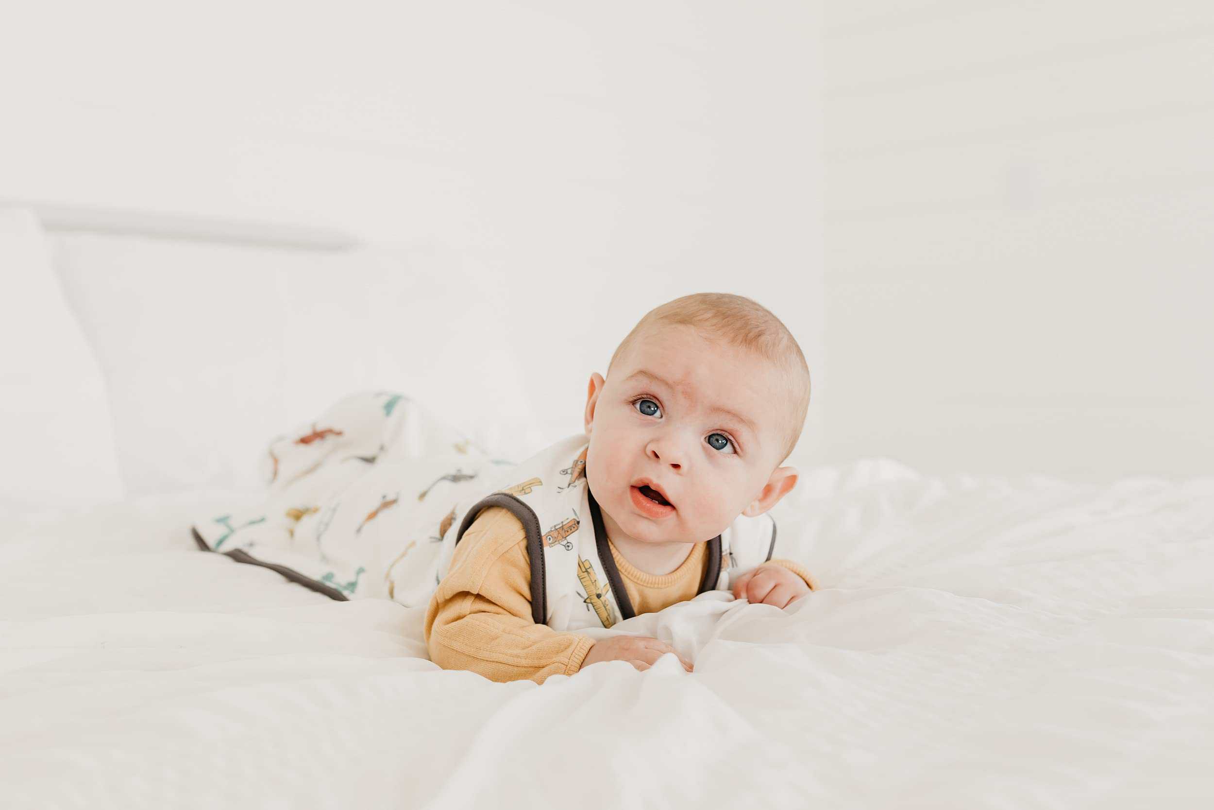 2. ¡CÁLIDO Y ACOLCHADO: Con un grado térmico general (TOG) de 1.70, nuestro saco de dormir envolvente proporciona la cantidad justa de calor para uso durante todo el año. Este saco de dormir ayudará a que su bebé duerma profundamente durante la noche en temperaturas entre 65 y 75 grados F.