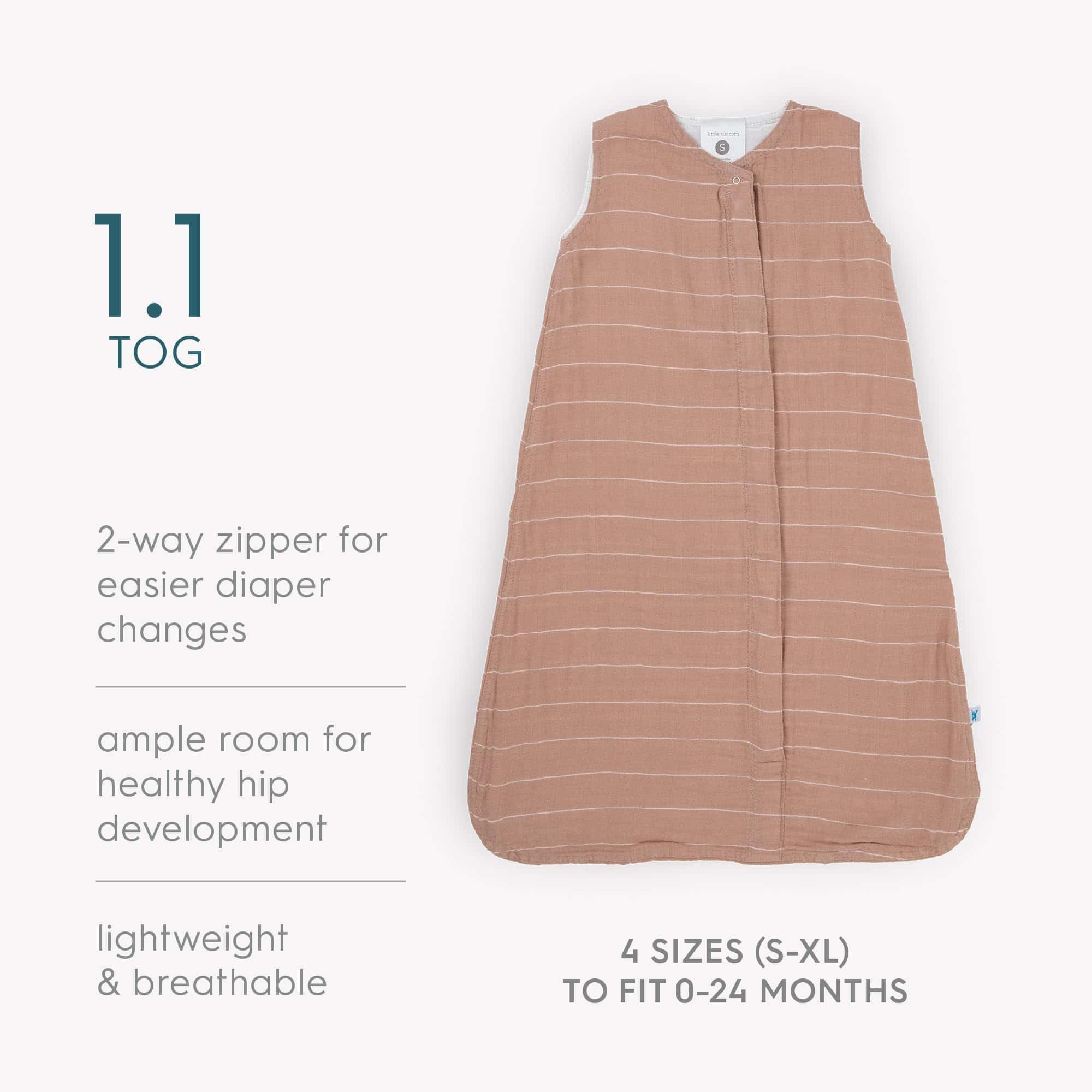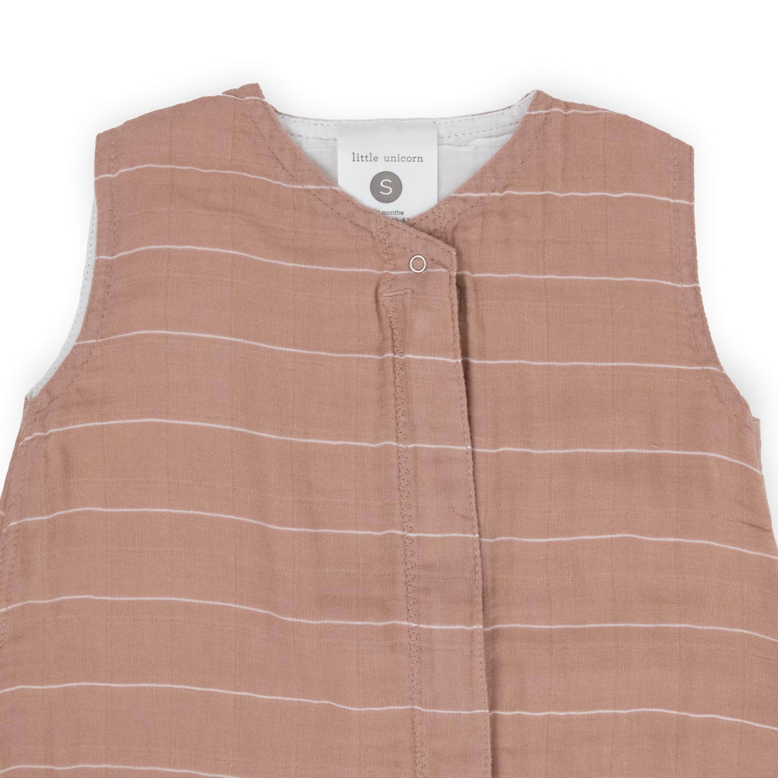 Saco de dormir de muselina premium de Little Unicorn diseñado para bebés de 0 a 6 meses. Fabricado con 100% algodón para ofrecer suavidad y transpirabilidad durante el sueño. El TOG de 1.1 proporciona la calidez adecuada para un descanso seguro. Cuenta con una cremallera de dos vías para facilitar su uso y cambios de pañal rápidos. Disfruta de la tranquilidad al saber que tu bebé está cómodo y seguro mientras duerme en este saco de dormir de alta calidad.