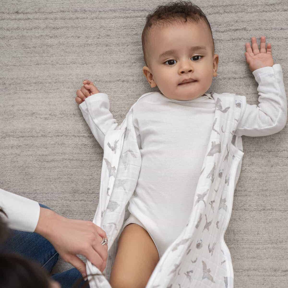 Diseñado para usarse sobre pijamas para eliminar mantas sueltas en la cuna, nuestro saco de dormir de algodón muselina 100% ayuda a garantizar un sueño tranquilo para el bebé y para usted. Producto duradero.