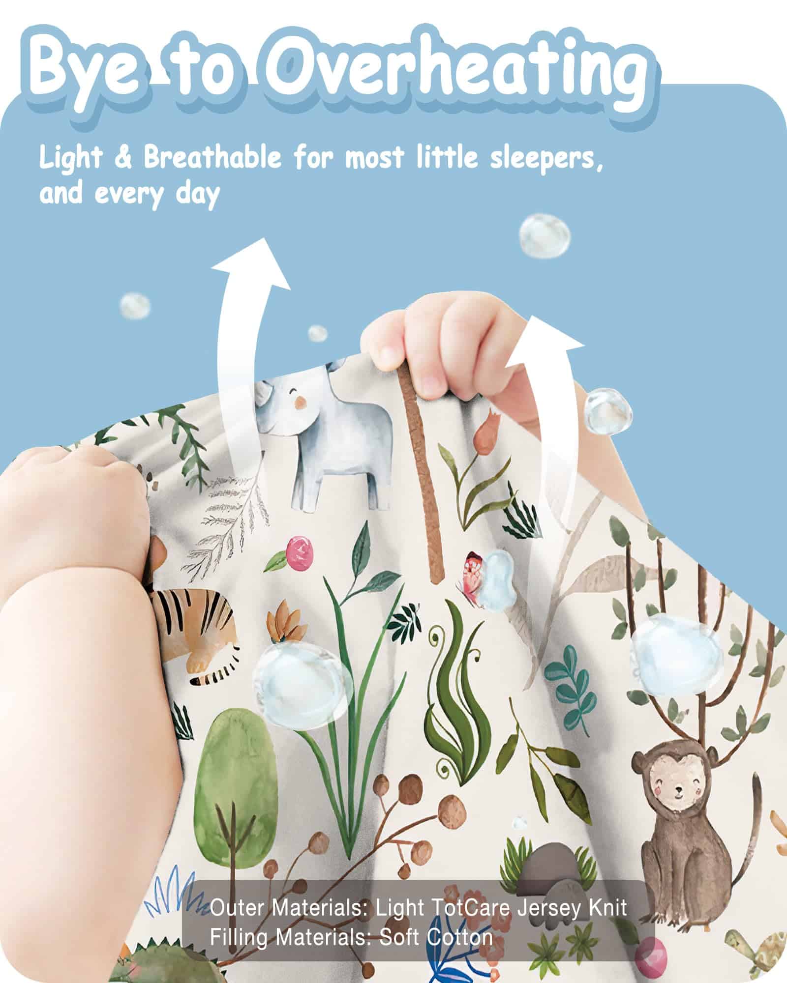Perfecto para la comodidad del niño pequeño: Nuestros sacos de dormir para niños pequeños sin mangas, hechos del suave material de punto jersey no tóxico TotCare, son suaves para la piel de su hijo. La tela transpirable, mejorada con un aumento del 30% en el flujo de aire, cuenta con un ligero índice TOG de 0,5 para evitar el sobrecalentamiento. Rellenas de algodón suave para mayor comodidad, estas mantas son ideales para usar durante todo el año, especialmente aptas para las noches de primavera y verano.