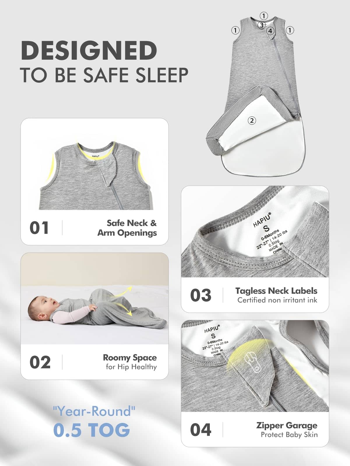 1. Ideal para el sueño del bebé: Nuestros sacos de dormir de 0.5 tog utilizan rayón de bambú, que es suave como la mantequilla, hipoalergénico, regulador térmico y sostenible. 2. Fácil de usar y cuidar: La cremallera J-Shaped de 2 vías YKK se abre completamente plana o desabrocha la mitad inferior para cambios de pañal más rápidos y secado en línea. Nuestro saco de dormir para bebé es lavable a máquina. 3. Espacioso y de uso prolongado: Espacio adicional para patear (saludable para la cadera) y espacio para crecer, pero no se puede patear. Mantiene a tu bebé acogedor durante todo el año. 4. Seguridad ante todo: Garaje de cremallera para proteger la cara del bebé de la irritación. Aberturas para brazos y cuello dimensionadas con la última investigación. Telas y rellenos rigurosamente probados contra más de 1,000 sustancias para una máxima seguridad. 5. Gran idea para un baby shower: Este saco de dormir con calidad superior y color unisex lo convierte en una excelente idea para cada niña o niño. S para recién nacidos (0-6 meses), M para bebés (6-18 meses) y L para niños pequeños (18-36 meses, 2T-3T).