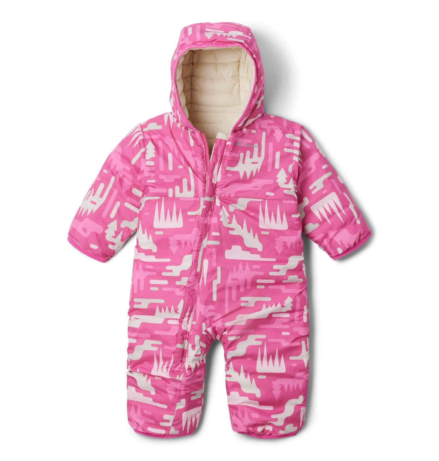 Tu pequeño conejito de nieve obtiene dos estilos cálidos en uno con este saco reversible para bebé de Columbia. Combina aislamiento sintético reciclado, tela resistente al agua y puños plegables en las manos y pies para abrigarse más. Columbia ofrece este saco en múltiples colores y tallas. Ajuste regular.