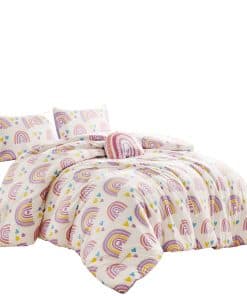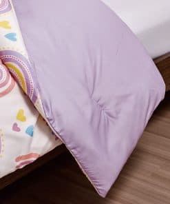 Para Niños Juego de Edredón de 4 Piezas Corazones Arcoiris – Hermoso Juego de Ropa de Cama con Diseño de Motivo Bordado