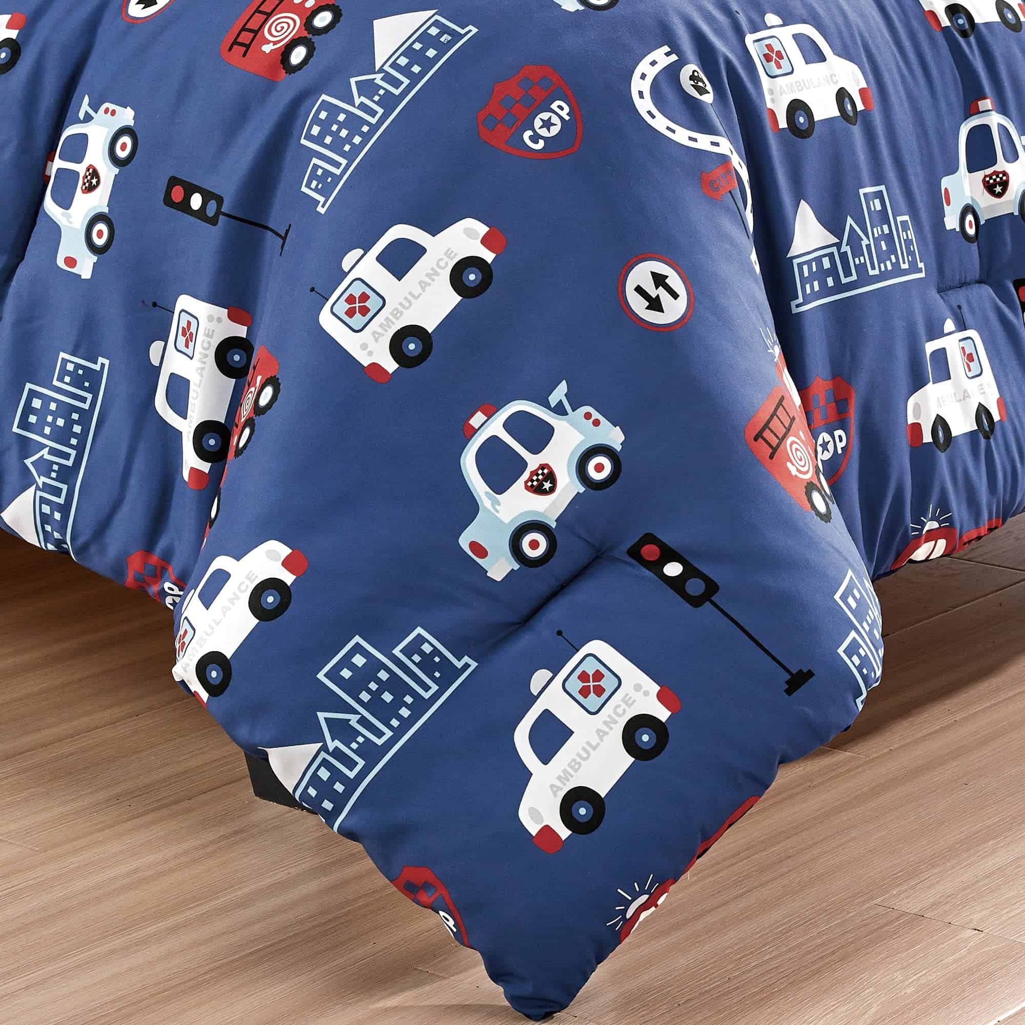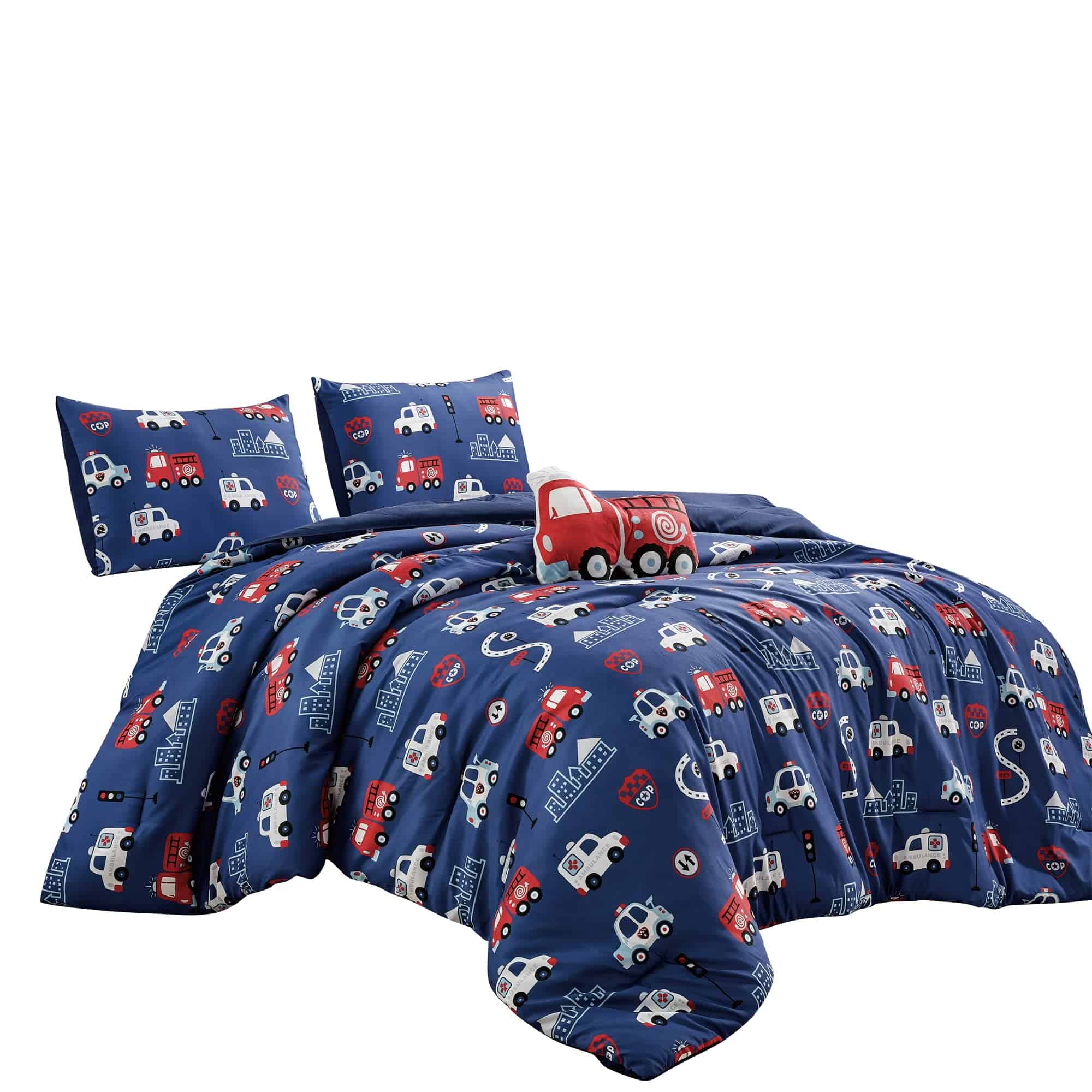 Para Niños Juego de Edredón de 4 Piezas con Hermoso Diseño de Motivos y Estampado de Bordado. Este juego incluye un edredón individual de 68 x 86 pulgadas, 2 fundas de almohada de 20 x 26 pulgadas y 1 almohada decorativa. Hecho de poliéster de alta calidad, este juego de ropa de cama para niños combina estilo y comodidad para crear un ambiente acogedor en la habitación de tu hijo.
