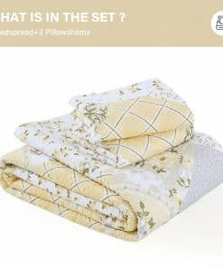 SahSahCasa 100% Algodón 120″x102″ Colcha Cubrecama Queen