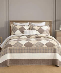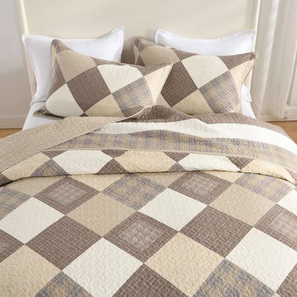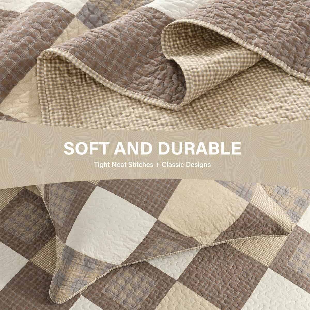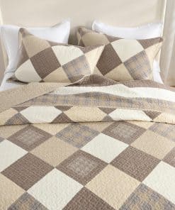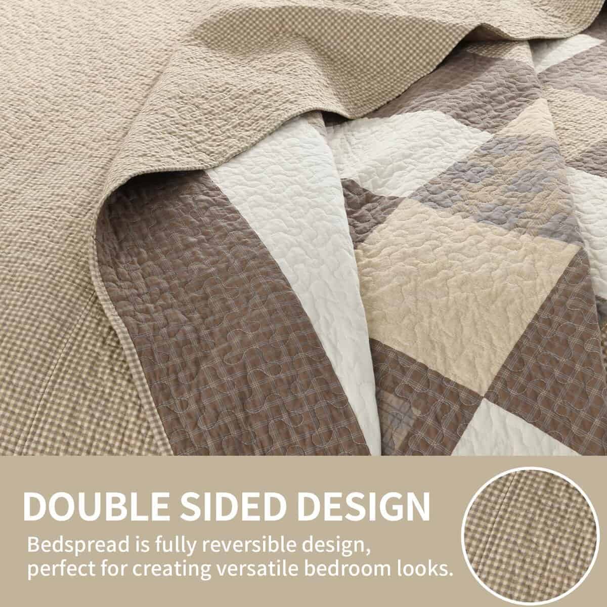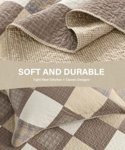 El diseño reversible de la colcha te permite cambiar fácilmente el aspecto de tu habitación solo dándole la vuelta. Con patrones de diamantes en tonos caqui/beige/marrón en un lado y patrones de gingham en tonos marrón/beige en el otro lado, esta colcha/cubrecama/edredón es versátil y decorativa.