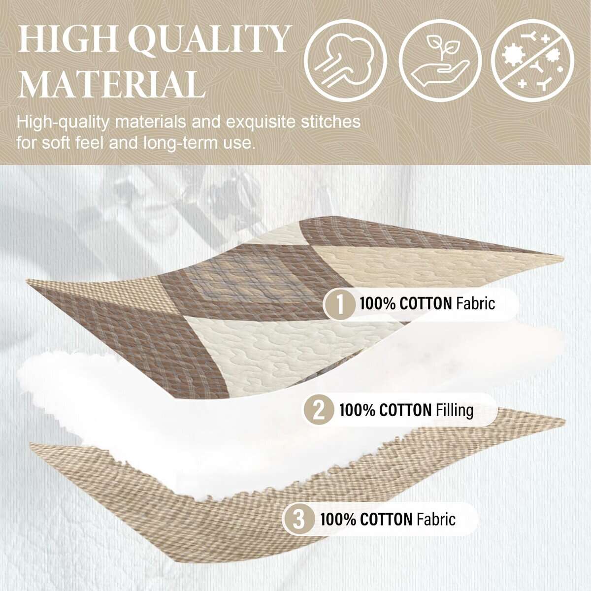 Puedes utilizar esta colcha extragrande como edredón, cubrecama, colcha, manta de cama o edredón ligero. Es ideal para usar durante todo el año, ya que las tres capas y el relleno de algodón garantizan la calidez y comodidad necesarias en primavera, verano, otoño e invierno.