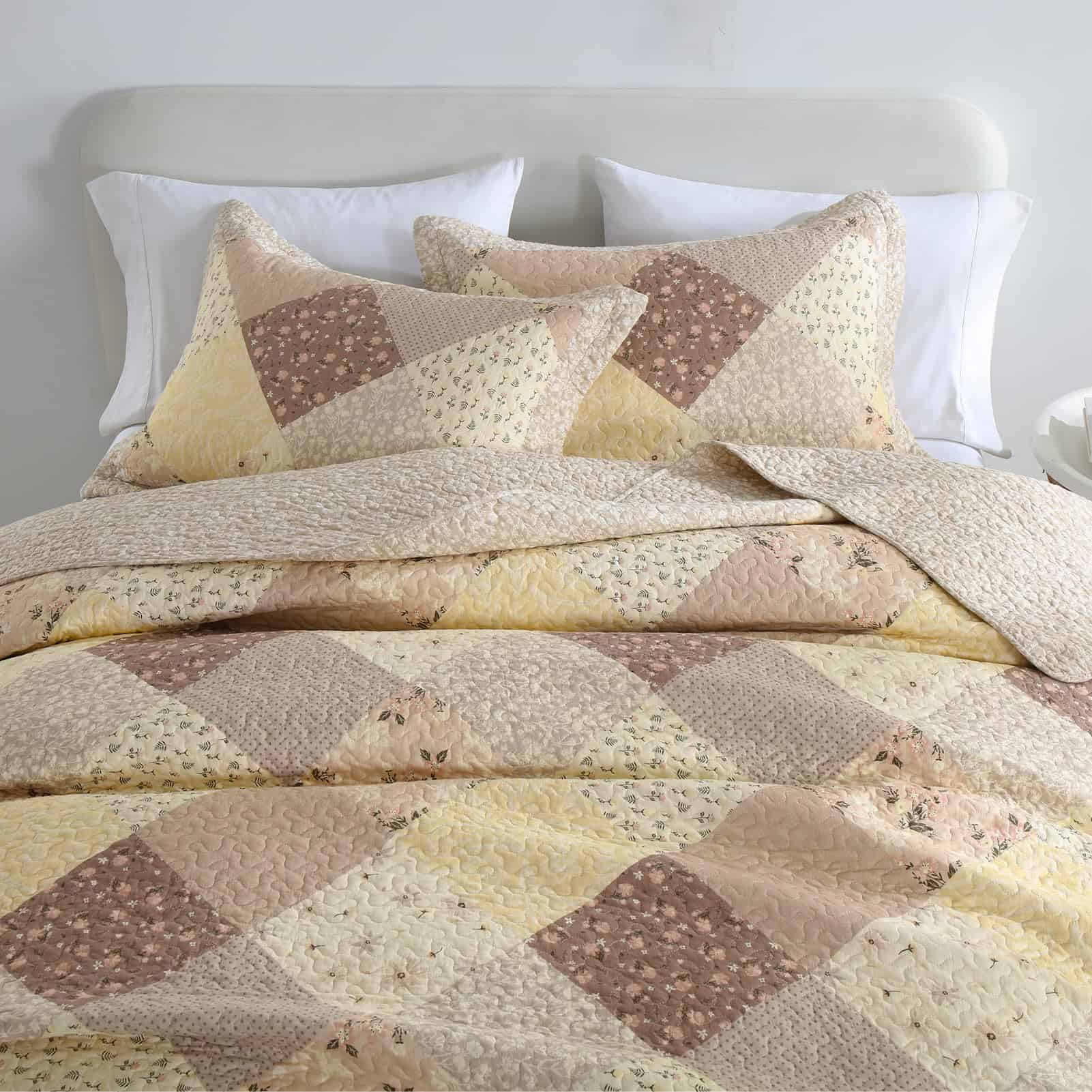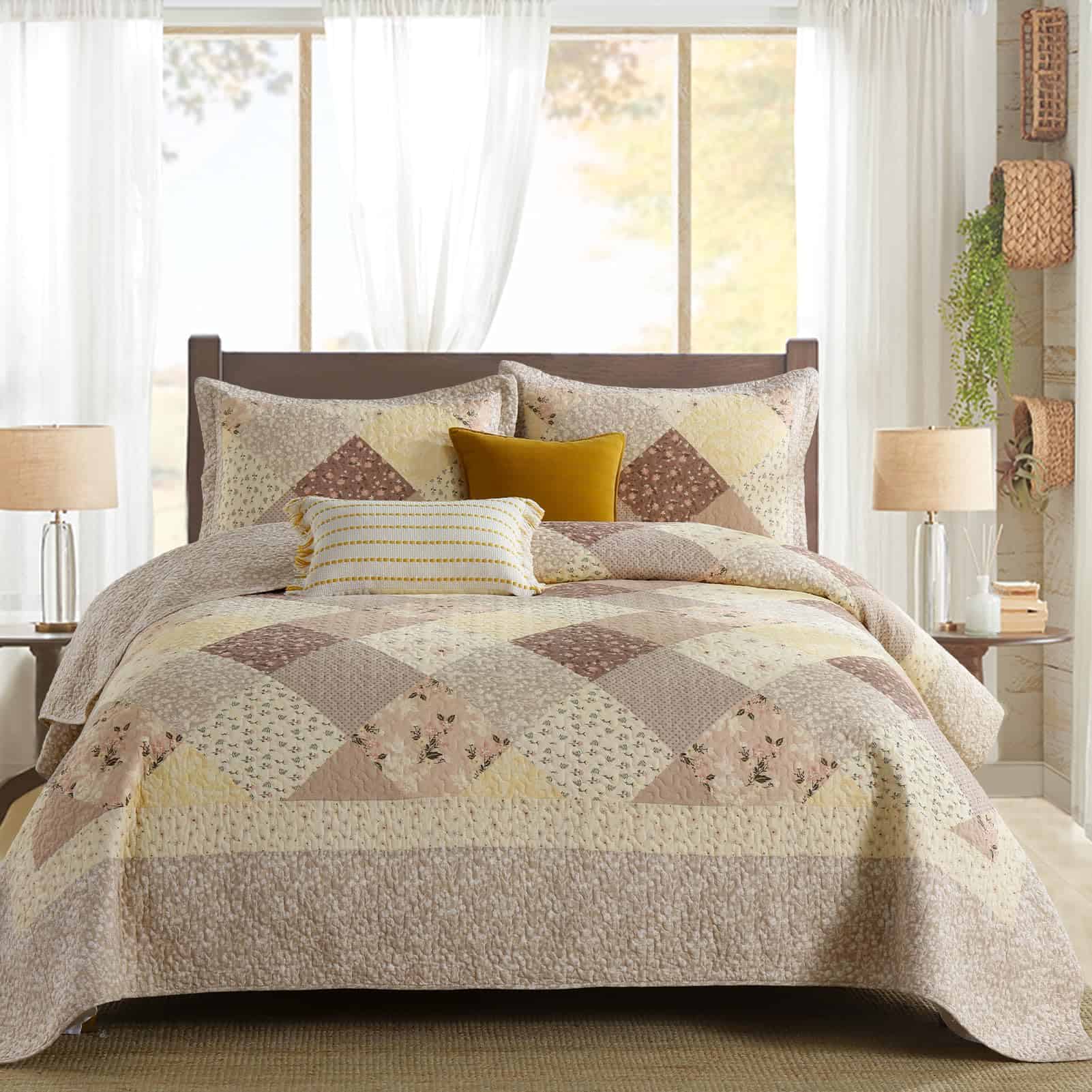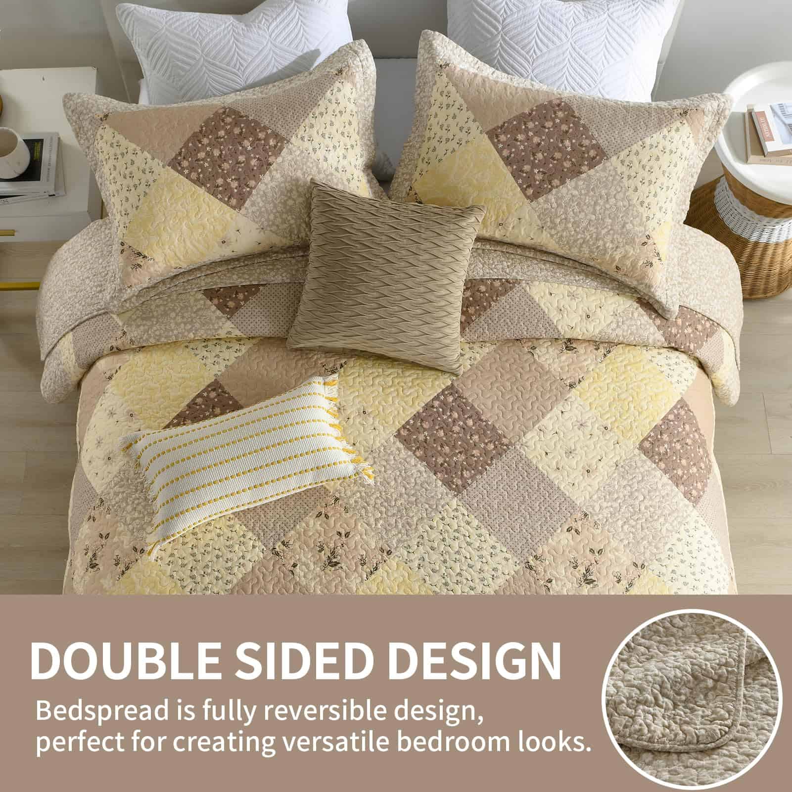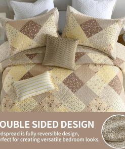 2. Ampliamente aplicable y decorativo – Este juego de colcha reversible floral en colores clásicos hace que tu habitación sea luminosa y acogedora. Este juego de colcha decorativa también puede combinarse fácilmente con la decoración de tu dormitorio, sala de estar, habitación principal, habitación de invitados, estudio, dormitorio y caravanas. Es una buena opción de regalo.