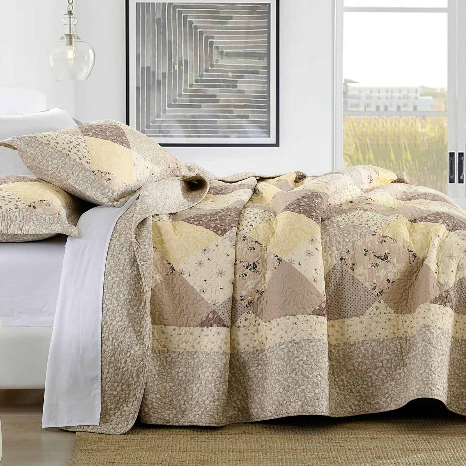 4. Juego de colcha (colcha) Queen de 3 piezas incluye – 1 colcha: 120″ x 102″; 2 fundas de almohada: 20″ x 28″.