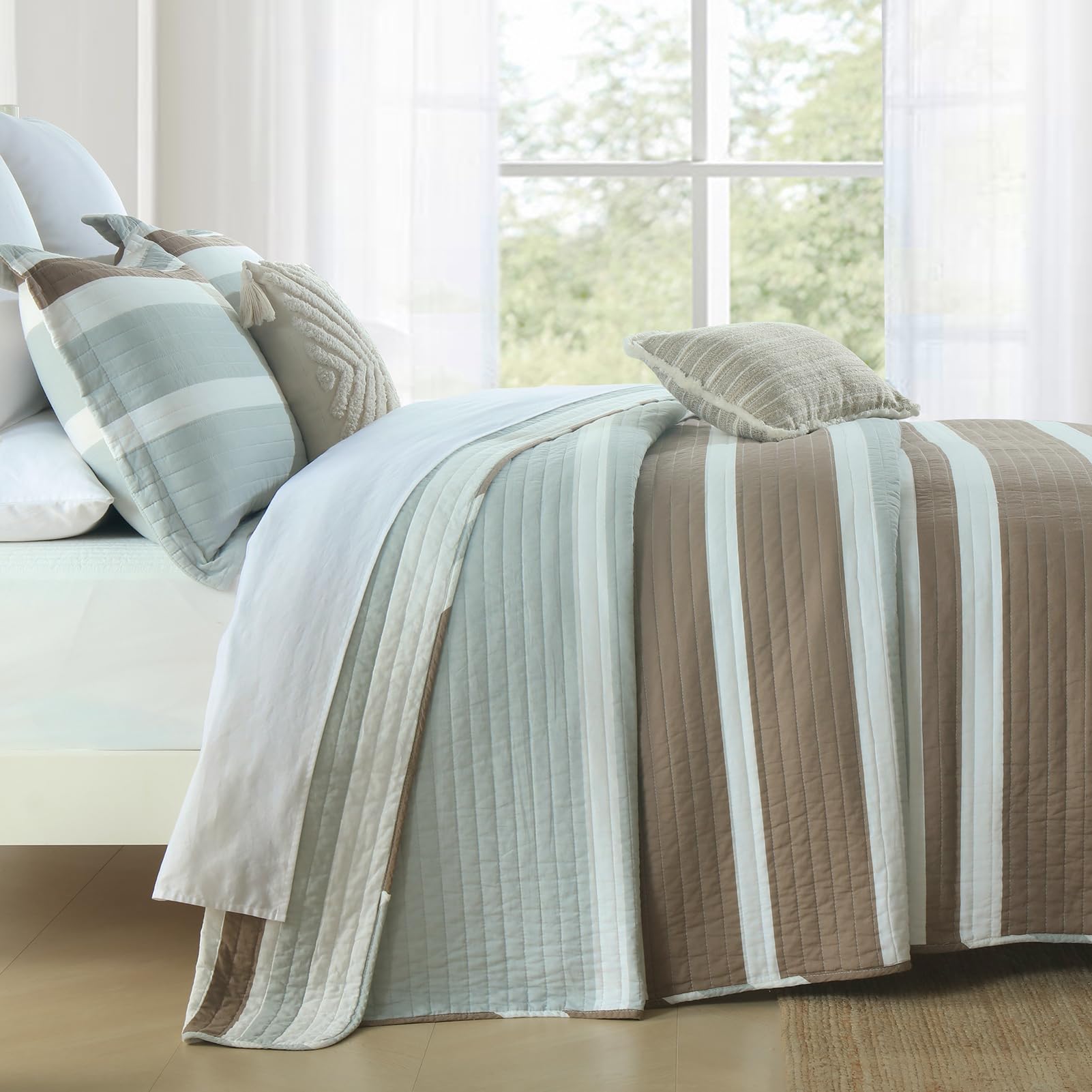 2. Ampliamente Aplicable y Decorativo – Este clásico juego de edredón en tonos marrón/gris, diseñado con patrones de rayas, hace que tu habitación sea luminosa y acogedora. Este juego de edredón decorativo también puede combinar fácilmente con la decoración de tu dormitorio, sala de estar, habitación principal, habitación de invitados, estudio, dormitorio y RVs.