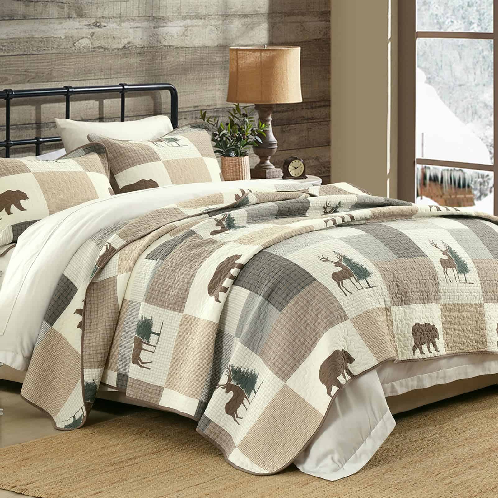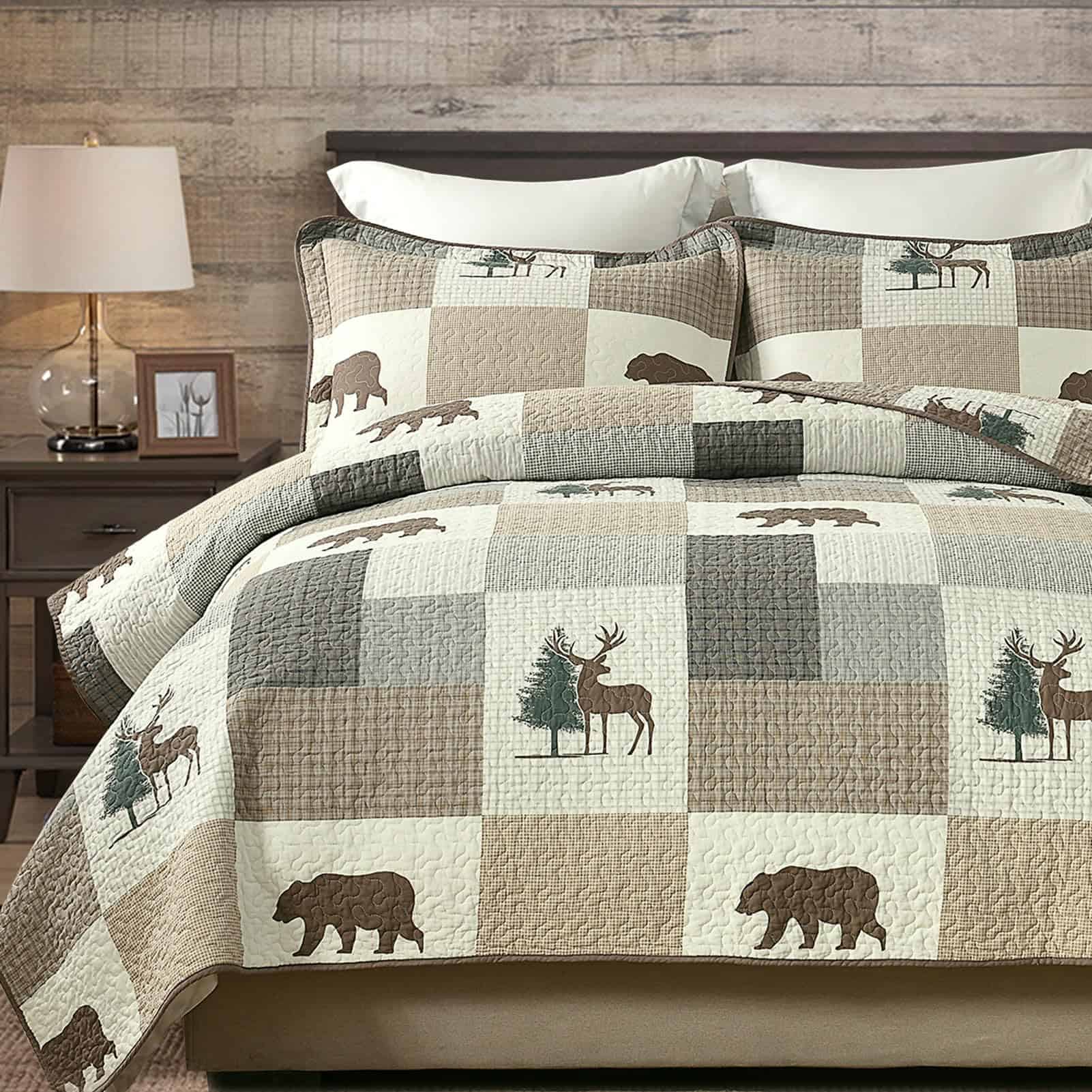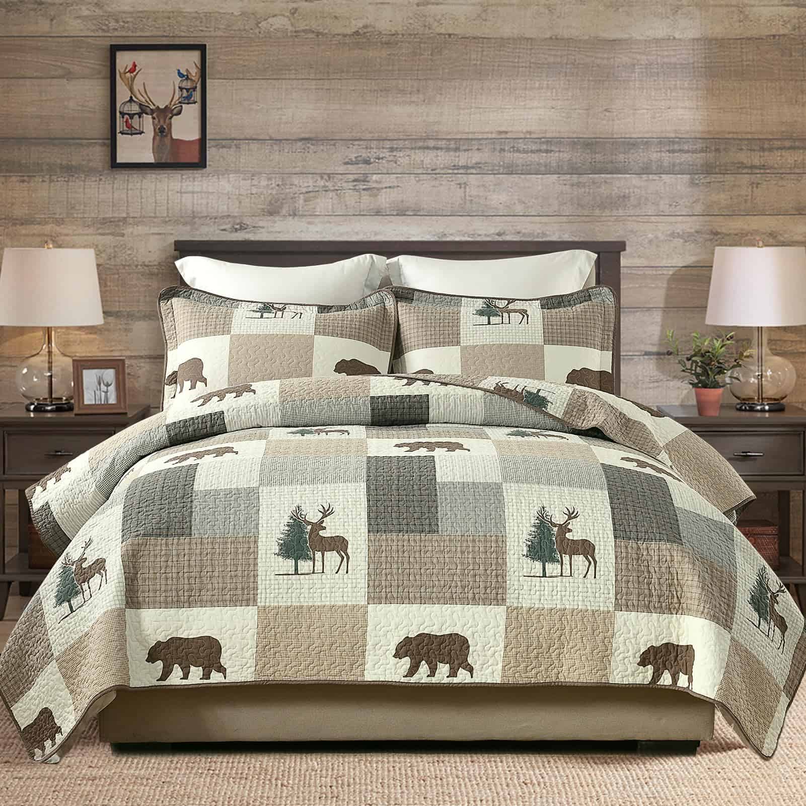 2. Ampliamente Aplicable y Decorativo: Este juego de edredón con temática de granja forestal en tonos marrón, gris y beige, ambos lados tienen diseños ricos en los mismos patrones de cuadros, plantas y vida silvestre, haciendo que tu habitación sea vibrante y acogedora. Este juego de edredón decorativo puede combinar fácilmente con la decoración de tu dormitorio, sala de estar, habitación principal, habitación de invitados, estudio, dormitorio y RVs.
