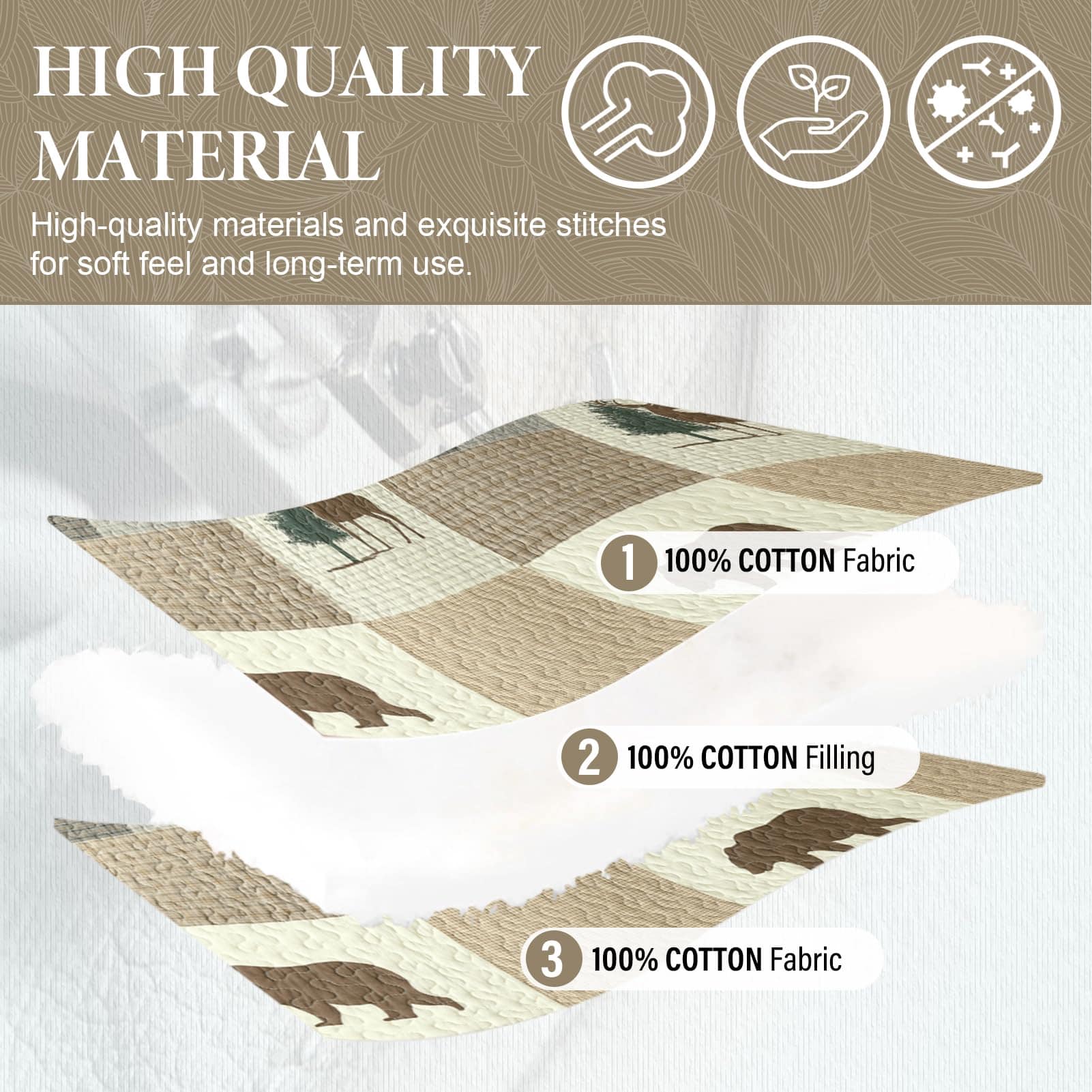 1. Algodón Natural 100%: La tela y el relleno están hechos de algodón natural 100%, es más suave y saludable, más transpirable y amigable con la piel. También es una buena opción para personas con constitución alérgica o que tienden a sudar más al dormir.