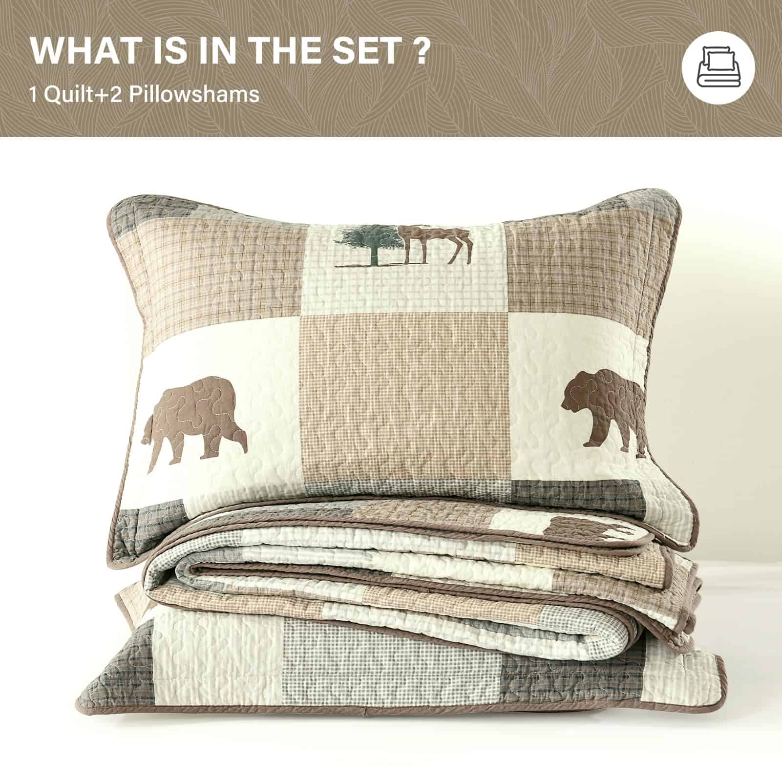 SahSahCasa Edredón Queen Size, Juego de -Marrón/Gris/Beige