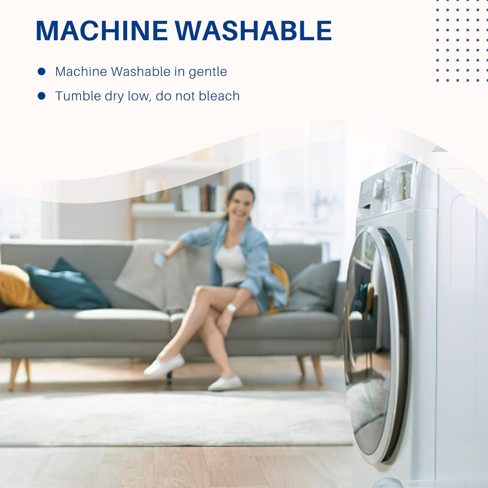 6. Instrucciones de Cuidado – Fácil cuidado, lavable a máquina en ciclo suave y secar a baja temperatura. No usar lejía. Si tienes mascotas, las fundas de almohada lavables y duraderas son una buena opción.