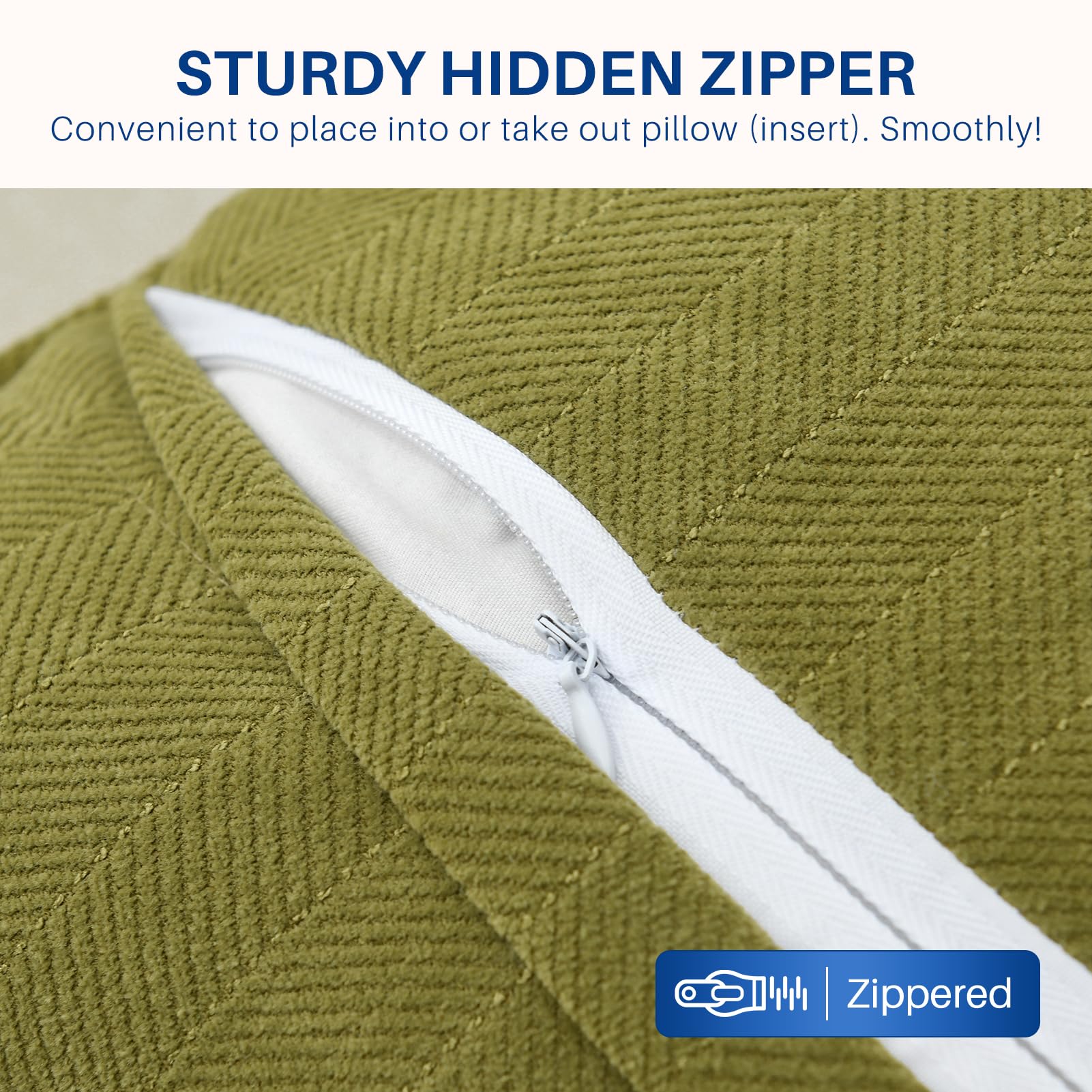 4. Tipo de Cierre – La cremallera oculta suave hace que sea conveniente colocar o sacar la almohada. Ayuda a que las fundas de almohada envuelvan las almohadas perfectamente.