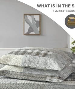 SahSahCasa Quilt King Size es un juego de colchas de alta calidad confeccionado con algodón 100% natural tanto en la tela como en el relleno. La suavidad y la saludabilidad de este material lo hace ideal para personas con constitución alérgica o que tienen tendencia a sudar más durante el sueño. Con un diseño clásico de patchwork de cuadros en gris y crema beige, esta colcha es perfecta para combinar con la decoración de tu dormitorio, sala de estar, habitación principal, habitación de invitados, estudio, dormitorio y autocaravanas.
