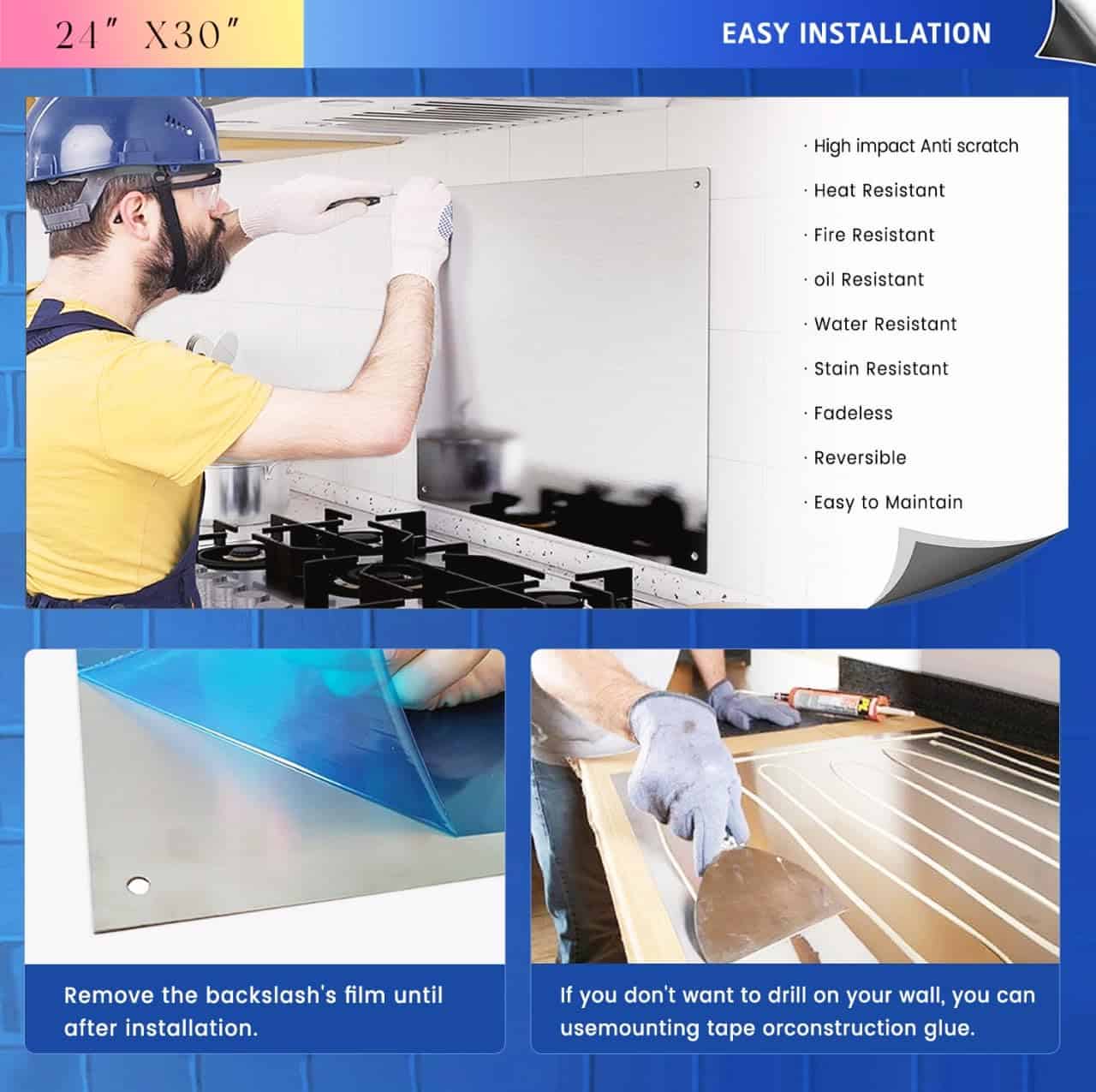 Salpicadero de Cocina de Acero Inoxidable 24″x30″ Duradero, Fácil de Instalar y Perfecto para Proteger su Cocina y Paredes Proteja las paredes de su cocina de la grasa, el aceite y el agua con este salpicadero de alta calidad de acero inoxidable 304 para estufa. Hecho de acero inoxidable premium 304, ofrece una durabilidad excepcional y resistencia a la corrosión, lo que lo hace ideal para cocinas, espacios comerciales y áreas de alta humedad. Ya sea que esté cubriendo su estufa, fregadero o encimera, este protector garantiza una protección duradera y un mantenimiento fácil. Características Clave: Acero inoxidable duradero 304: El protector de salpicaduras de estufa para pared está fabricado con acero inoxidable 304 de alta calidad, garantizando resistencia al óxido, la corrosión y las manchas. Está diseñado para resistir el uso diario y los entornos de alta humedad. Tamaño perfecto (24″x30″): Con un tamaño de 24 pulgadas por 30 pulgadas, este salpicadero detrás de la estufa proporciona amplia cobertura para la mayoría de las paredes y encimeras de cocina, protegiendo contra salpicaduras y manchas comunes. Resistente grosor de 0.7mm: Con un grosor de 0.7mm, el panel de salpicaduras de metal es lo suficientemente resistente como para soportar impactos y uso diario, a la vez que es ligero para una fácil instalación. Instalación fácil: Cuatro agujeros preperforados en cada esquina permiten un montaje rápido y seguro. El paquete incluye cuatro tornillos de acero inoxidable para una fácil instalación en cualquier pared. Diseño elegante y moderno: Añade un toque elegante a la decoración de su cocina, combinando funcionalidad con una apariencia elegante. Ideal para Cocinas, Restaurantes y Más: Perfecto para cocinas residenciales, espacios de cocina comerciales, restaurantes y bares, este protector de salpicaduras de estufa para pared de cocina es una adición esencial para áreas propensas a salpicaduras y derrames. Fácil de Limpiar: La superficie lisa de acero inoxidable es fácil de limpiar con solo pasar un paño, diseñada para un mantenimiento sin esfuerzo, asegurando una cocina más limpia.