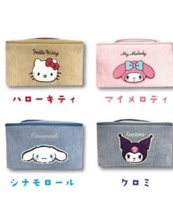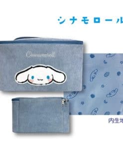 Esta bolsa de cosméticos de San-X presenta al adorable personaje de Cinnamoroll, ideal para guardar tus productos de belleza de manera organizada y con estilo. Con un tamaño de 15 x 22 x 15 cm, esta bolsa cuenta con un bolsillo interior de malla que te permite mantener tus pertenencias ordenadas. Fabricada en poliéster, su material de pana la hace perfecta para el otoño e invierno. ¡Lleva contigo esta bolsa de cosméticos y añade un toque de diversión a tu rutina diaria!