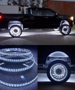 Paquete incluido: 4 luces de rueda de 15.5», cable de 20 pies para cada una, juego de 4 cables con interruptor, control remoto, manual de instalación, accesorios de montaje necesarios.