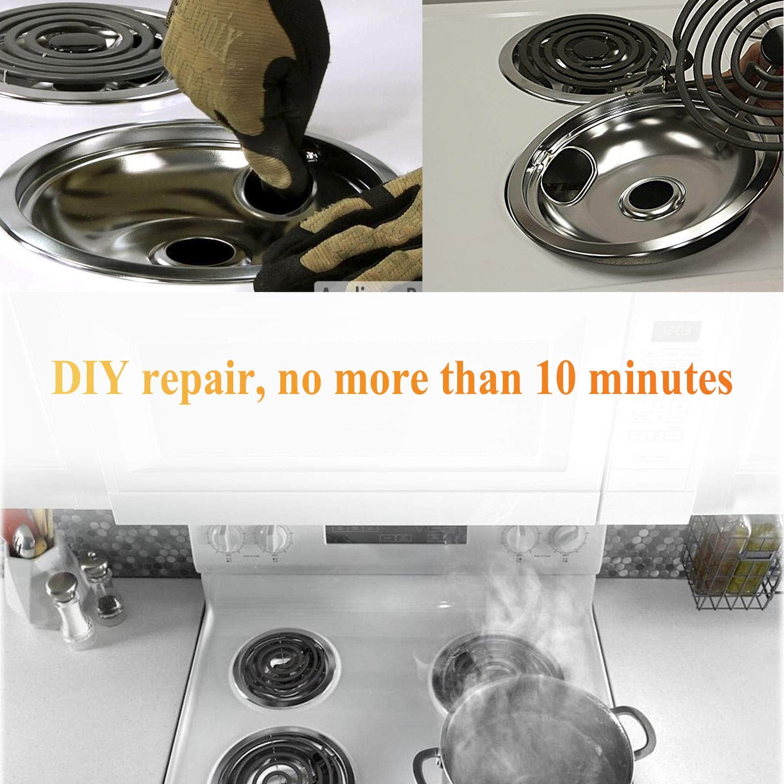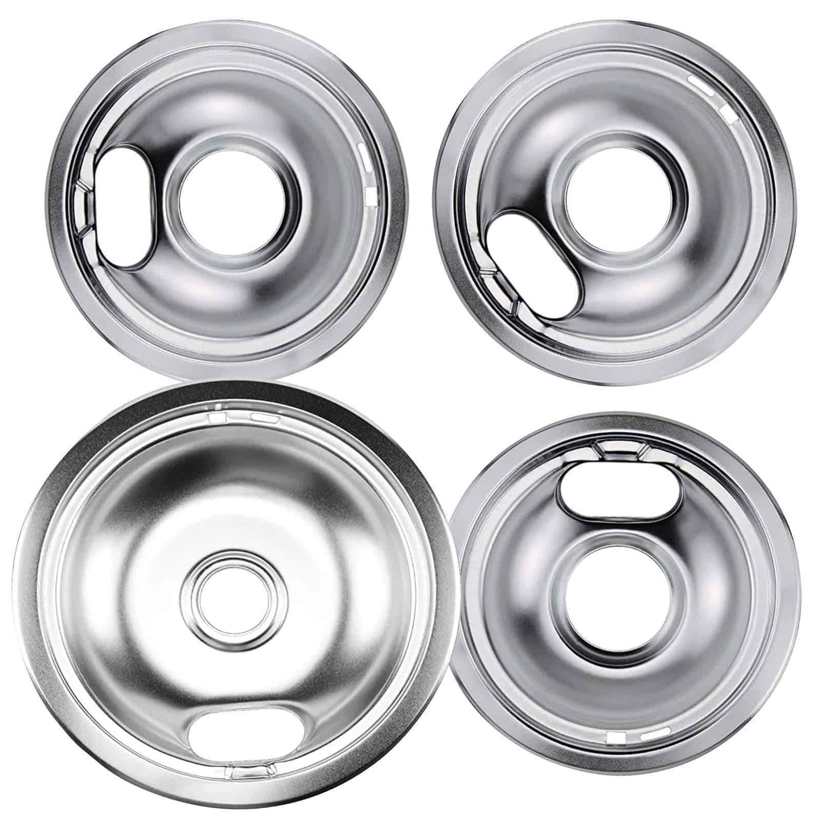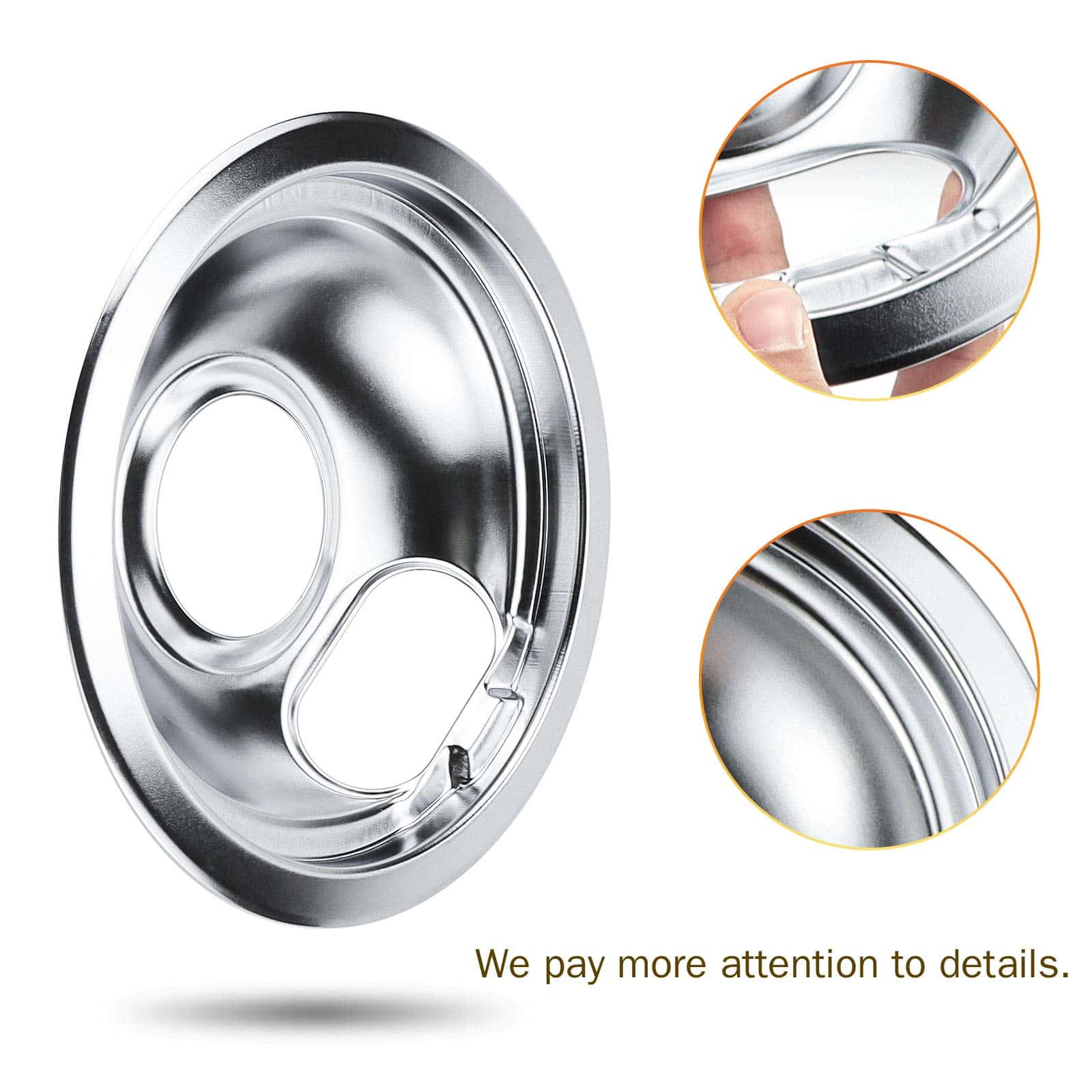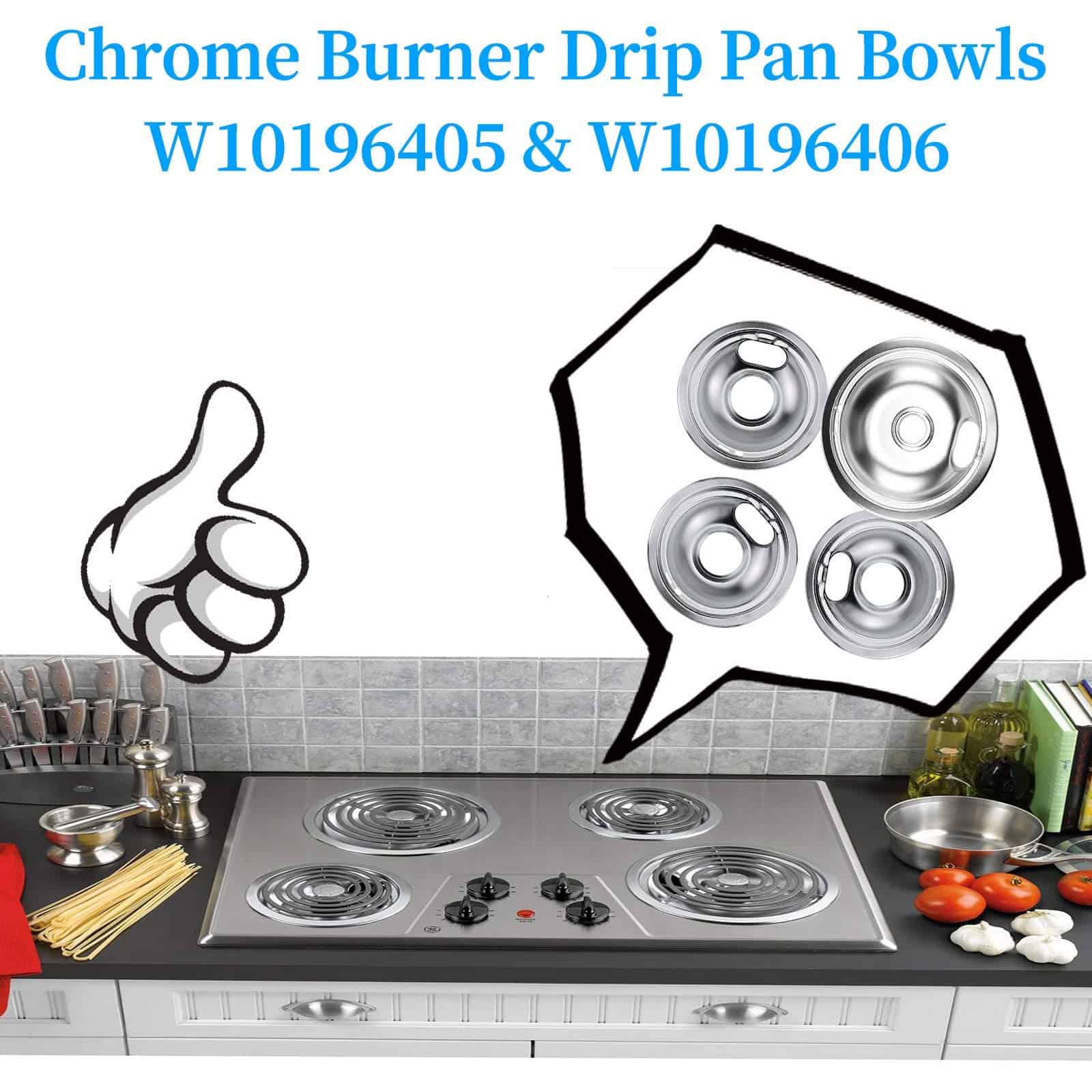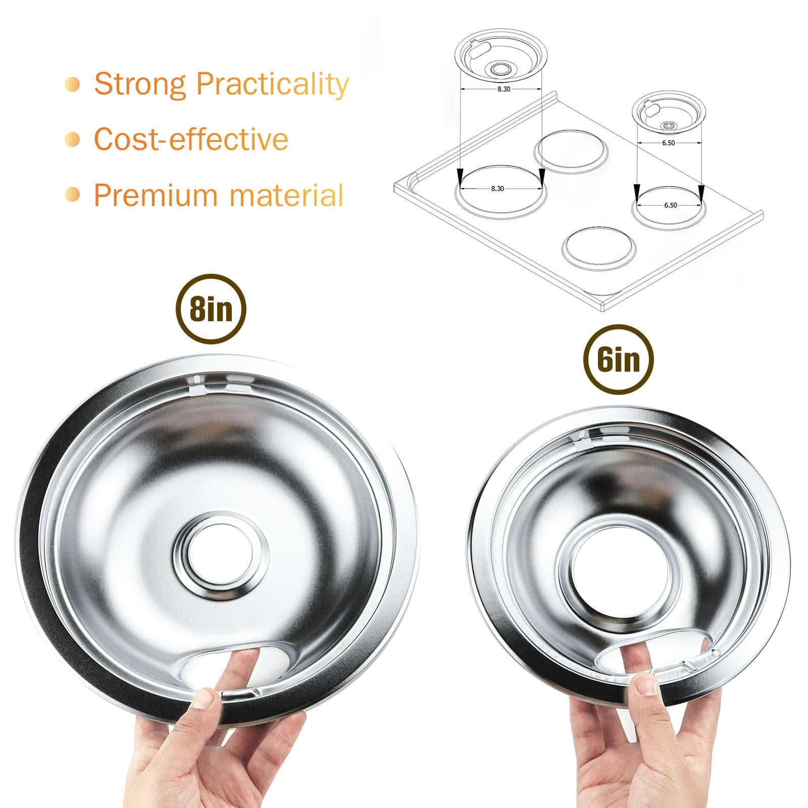 APPLIANCEMATES Range Drip Pan|Bowl 1 Pieza de 8» Grande W10196405 y 3 Piezas de 6» Pequeñas W10196406 Sartén para estufa. Reemplaza los números de piezas W10196405 (Mfg WPW10196405): 0064676, 0075482, 0087550, 0087552, 0087838, 0088810 0089285, 0091813, 0304979, 0310228, 0310681, 0B04300211, 0P00800511, 0P00800611, 0P00801211, 0P00801311, 1065-206, 1065-208, 1065-211, 305839K, 305839Y, 306797, 1065206, 1065208, 1065211; 14200090, 14200186, 14202962, 14205069, 14205554, 14210006, 14212235, 14213550, 14217393, 14219066, 19950013, 308649K, 308649KQ, 309112K, 309426K, 3150247, 3150247A, 3150247BULK, 3150247P, 332-185, 404187, 4157866, 4165768, 4170093, etc. W10196406 (Mfg WPW10196406): 256691, 296481, 1065207, 1065209, 1065210, 14200056, 14200209, 14203427, 14205045, 14205549, 14210002, 14211601, 14212298, 14218107, 14219065, 19950014, 308648K, 309113K, 309427K, 834622, 3150246, 3150246A, 3150246BULK, 3150246P; 332-180, 42141, 67988, 404179, 560255, 4322800, 4327709, 4351458, 4352111, 4352552, 4352756, 4353809, 4354298, 4355083, 4355462, 4364193, 7725P002-60, 7725P007-60, 7725P015-60, 8190001, 8190674, 93148357, 93150246, 93150246B, etc. Si los modelos mencionados anteriormente no están incluidos en los que necesita, o no está seguro de la compatibilidad, consulte con nosotros y proporcione su número de modelo antes de realizar el pedido. Gracias por elegir esta pieza para sus necesidades. Cualquier pregunta, por favor contáctenos, responderemos en 24 horas.
