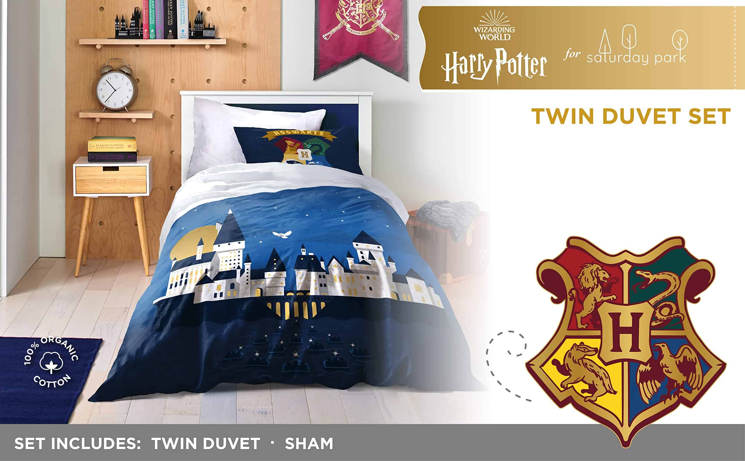 1. AJUSTE PERFECTO Y DISEÑO ELEVADO – El juego de funda nórdica y funda de almohada incluye (1) funda nórdica twin de 68 x 88 pulgadas y (1) funda de almohada de 20 x 26 pulgadas. Añade un toque de encanto decorativo a tu habitación con nuestro elegante y súper suave juego de funda nórdica de Harry Potter. 2. ALTA CALIDAD Y FÁCIL CUIDADO – ¡Mantén a tu pequeño tan acogedor como sea posible! Nuestra tela transpirable es súper suave y excelente para todas las estaciones. Fabricada con 100% algodón orgánico y resistente al desgaste permitiendo una noche de sueño cómoda. Para limpiar, lavar a máquina en frío. Para secar, secar al aire o en secadora a baja temperatura. 3. ORGÁNICO Y SOSTENIBLE – Algodón 100% Orgánico Certificado GOTS. GOTS (Global Organic Textile Standard) es el estándar de procesamiento textil líder a nivel mundial para las fibras orgánicas, incluidos criterios ecológicos y sociales, respaldado por la certificación independiente de toda la cadena de suministro textil. Una elección de regalo ecológica perfecta para todas tus ocasiones especiales. 4. DESCUBRE LA COLECCIÓN DE HARRY POTTER – Completa tu dormitorio con nuestros otros productos de Harry Potter – Ropa de cama y accesorios a juego disponibles (se venden por separado). 5. SOBRE LA MARCA – Aquí en Saturday Park, estamos comprometidos con un estilo de vida ecológico y sostenible y nos encanta ayudar a nuestros clientes a crear un espacio que sea verdaderamente único. Nuestros productos de excelente calidad y no tóxicos están hechos para mezclar y combinar realmente para satisfacer todas las preferencias de estilo de los niños. ¡Así que adelante, combina cualquier pieza de la colección y seguramente se verá increíble!